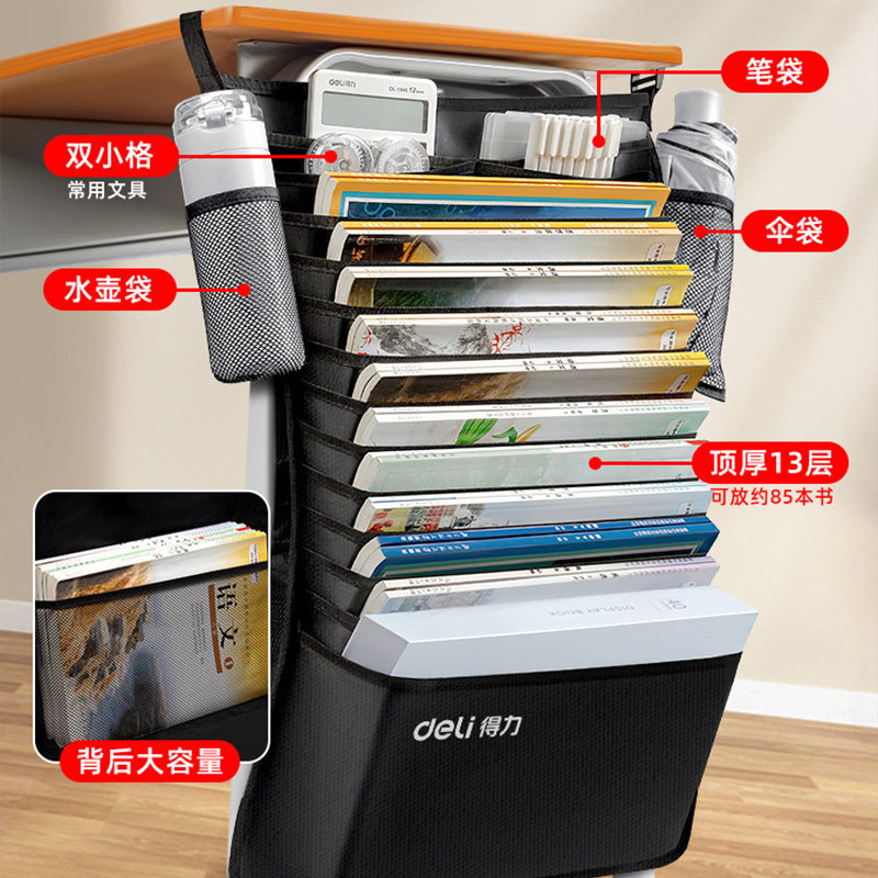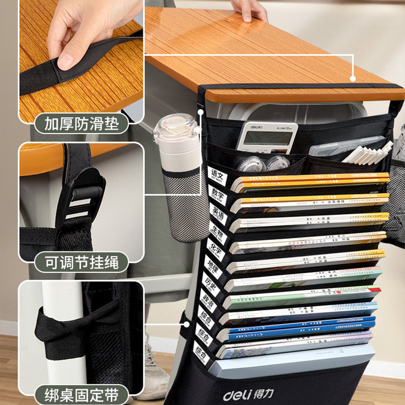 得力大容量课桌收纳袋挂袋初中生挂书袋侧学生书本书袋课桌神器高中生书桌书挂多功能书立放书袋子桌边带定制