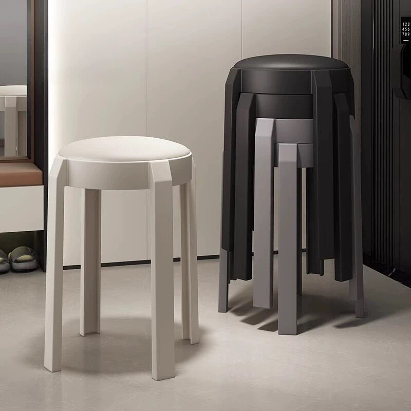 塑料凳子家用加厚软包圆凳轻奢高级感板凳结实耐用餐桌椅子防滑