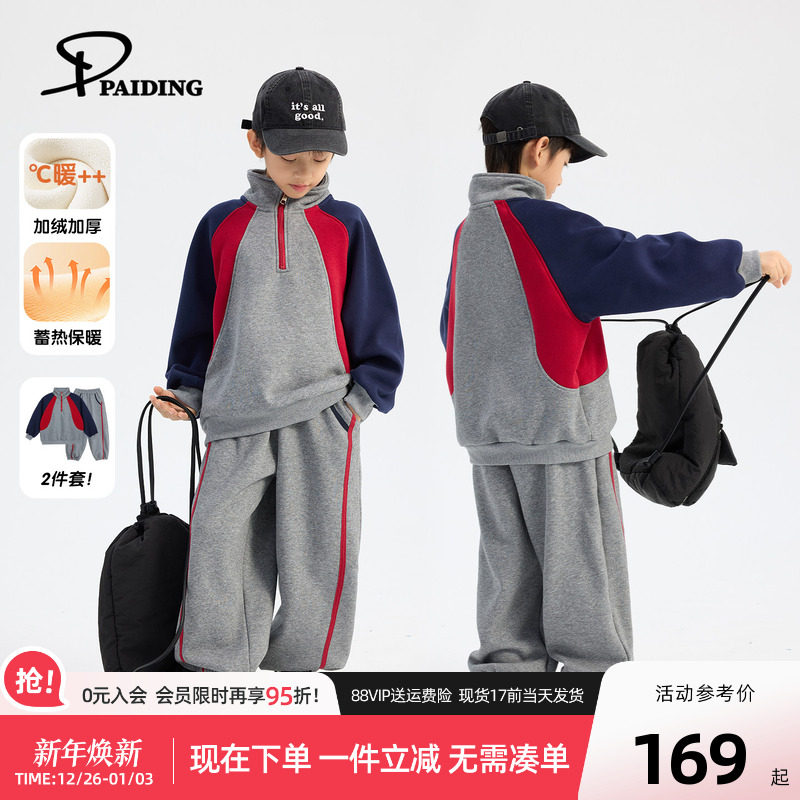 派町童装男童套装2025秋季新款大童撞色两件套儿童加绒上衣裤子潮