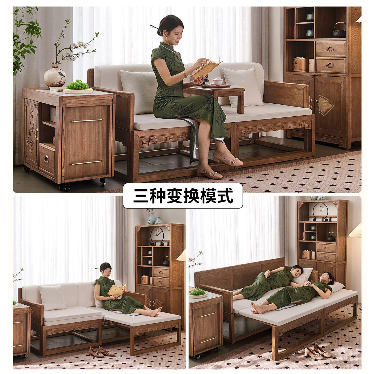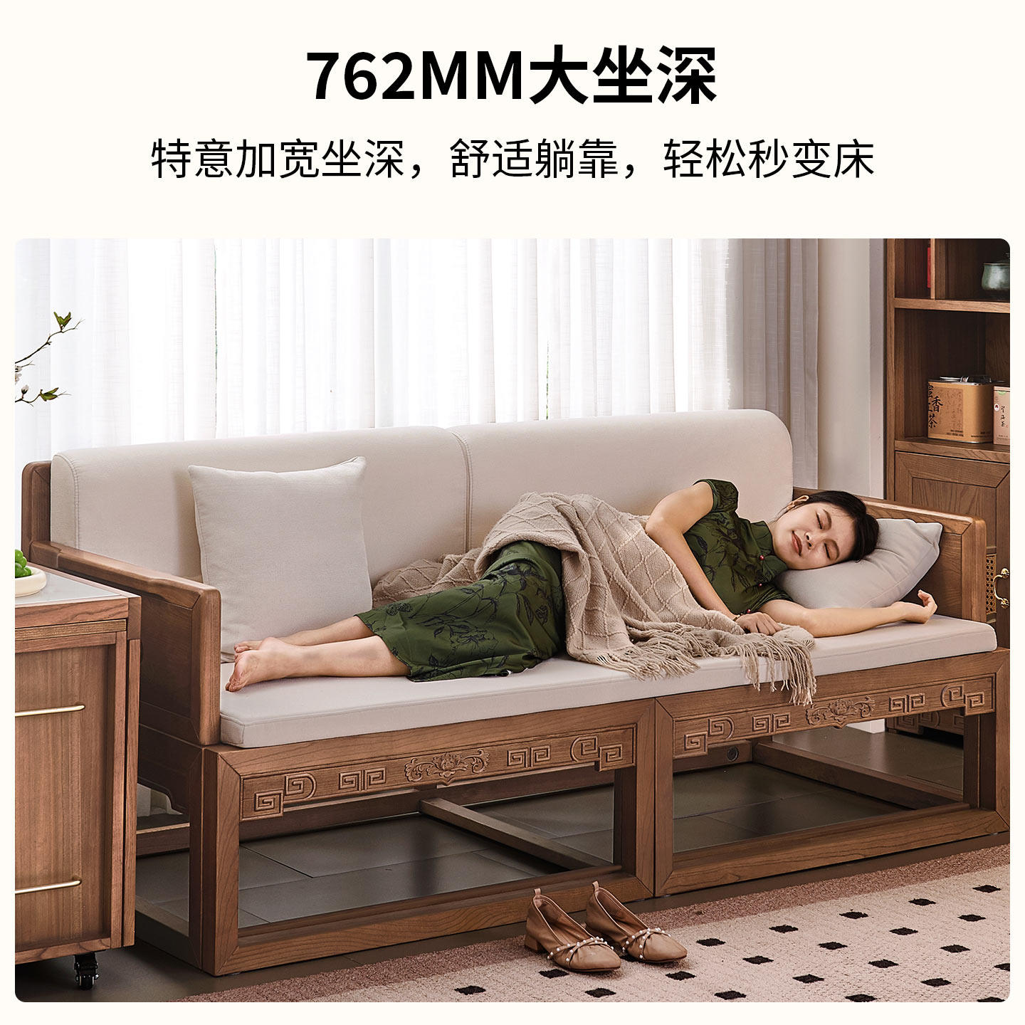优尚雅轩榆木罗汉床实木沙发床古典花梨红木色伸缩两用单人沙发床