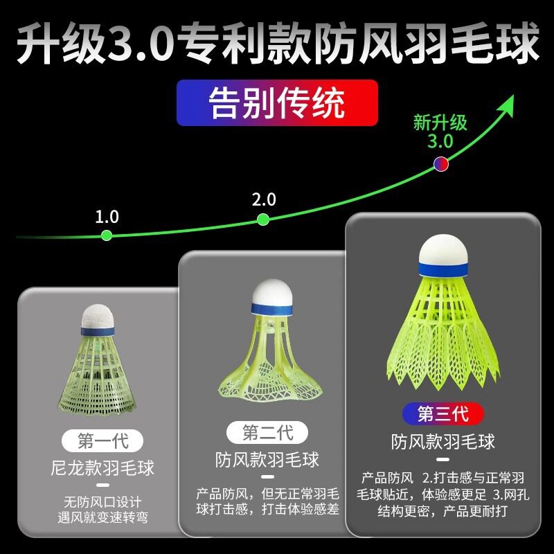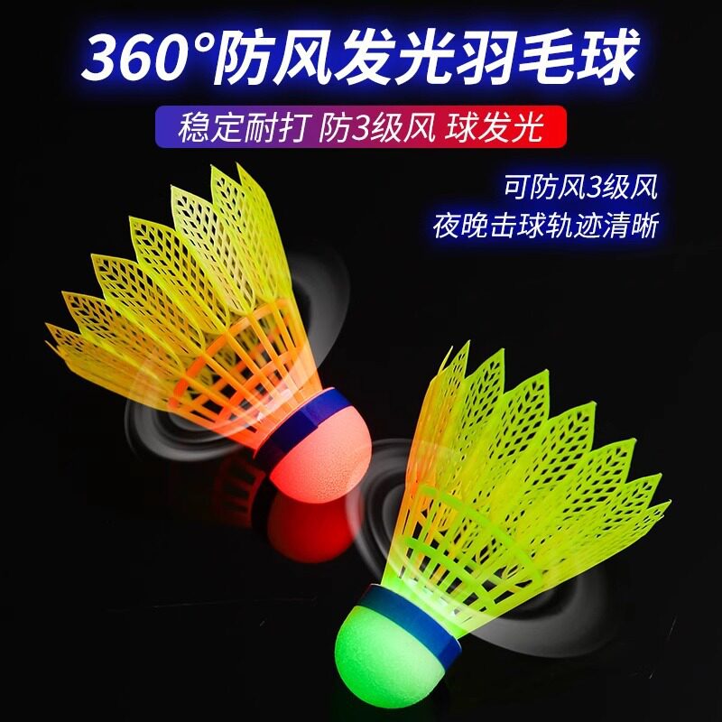 发光羽毛球带LED灯夜光耐打塑料荧光尼龙球高弹力夜间防风打不烂