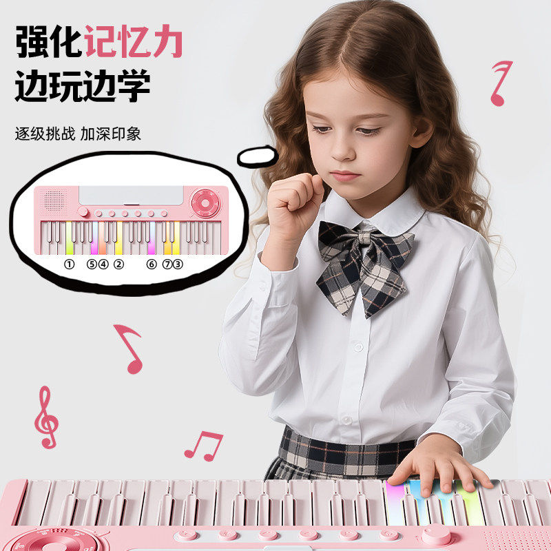37键彩虹电子钢琴儿童初学入门可弹奏玩具小女孩宝宝生日礼物
