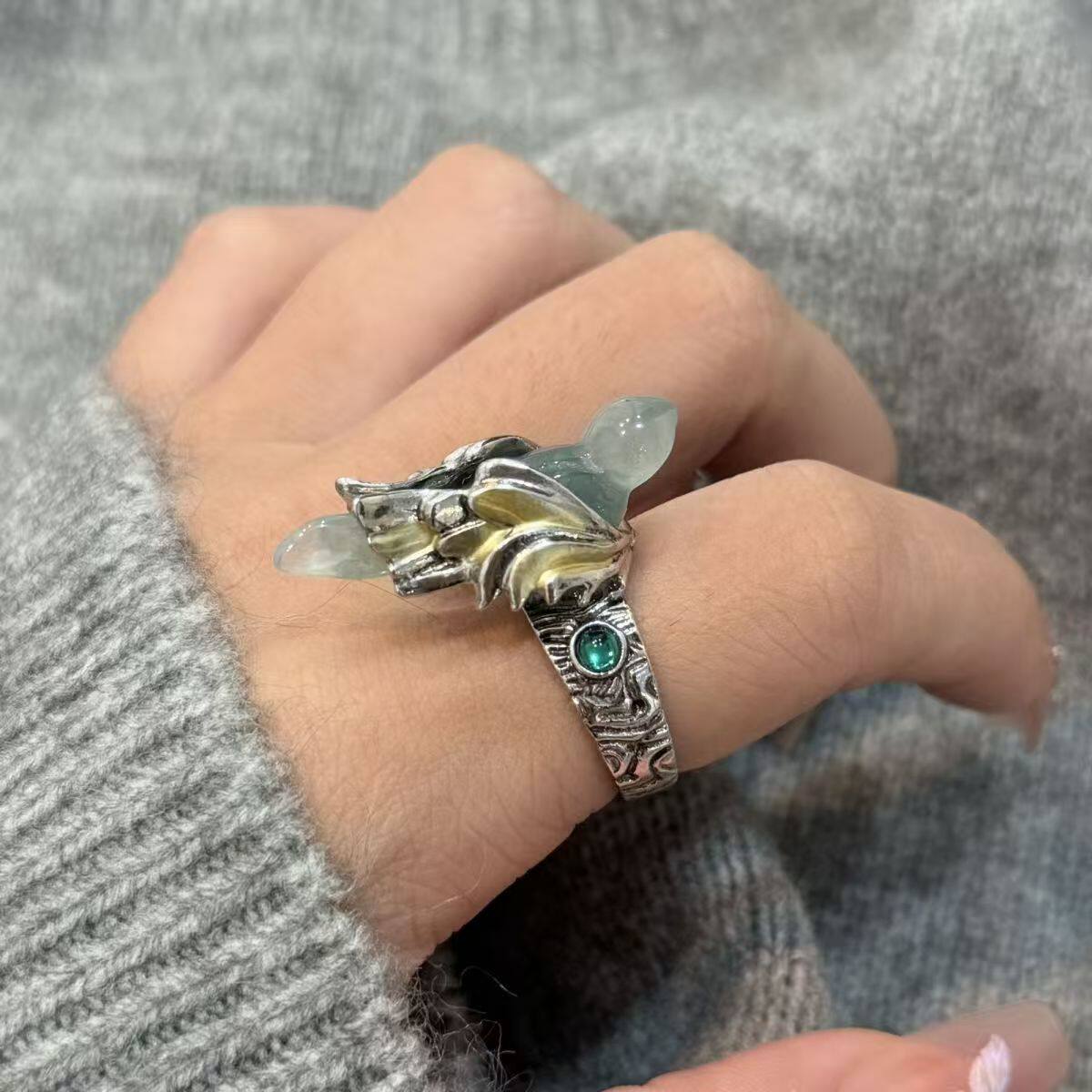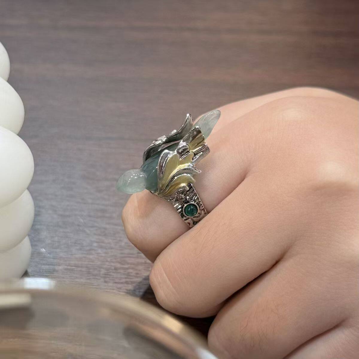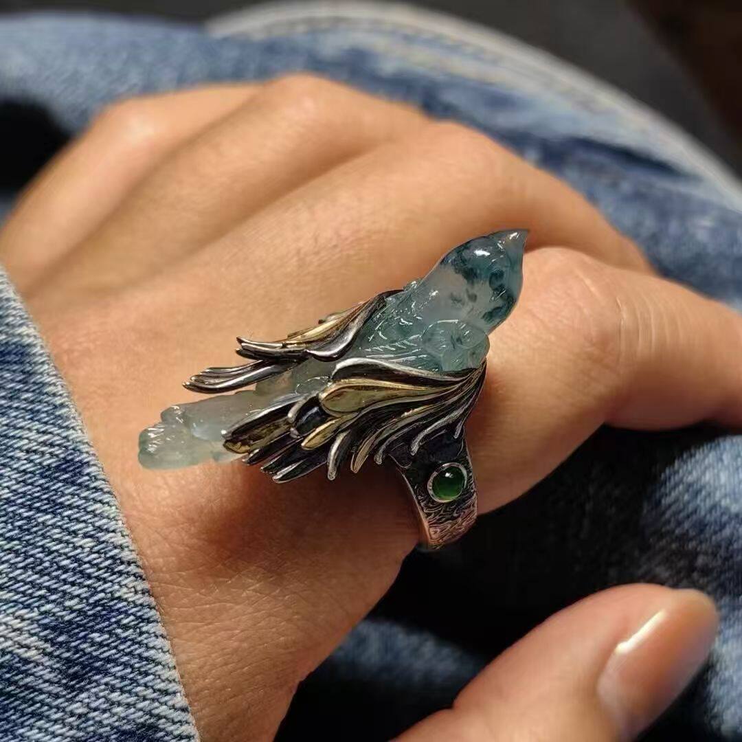 「燕舞欣春」复古仿翡翠飞鸟戒指女新中式古风小众开口可调节指环