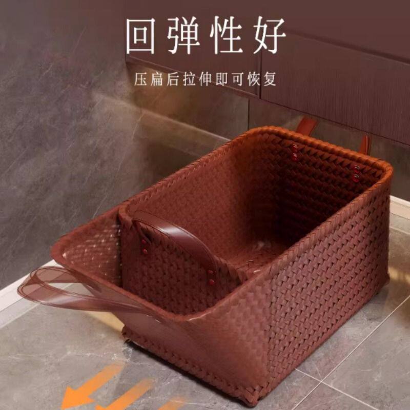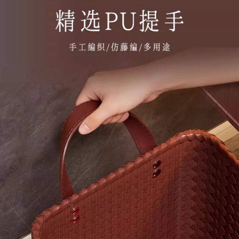 汽车收纳筐后备箱车载用品仿藤编收纳篮超大容量置物篮防压编织篮