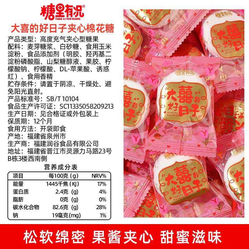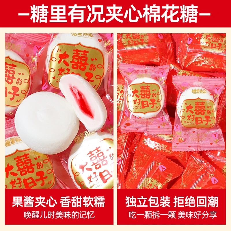 大喜的日子棉花糖水果味夹心结婚喜糖订婚糖果混散装批发满月乔迁