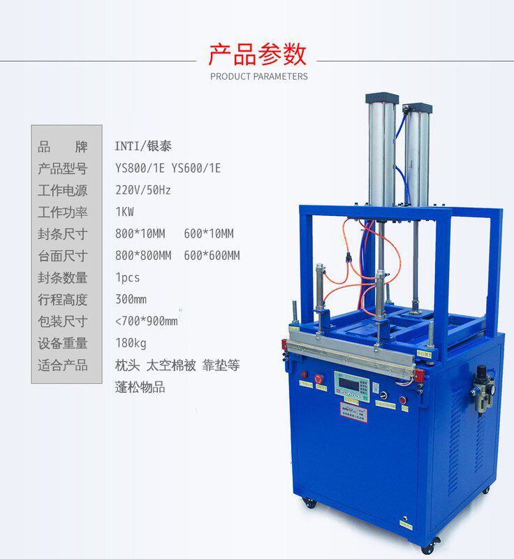 银泰压缩包装封口机 毛绒玩具 羽绒被 太空棉 乳胶枕头压缩封口机