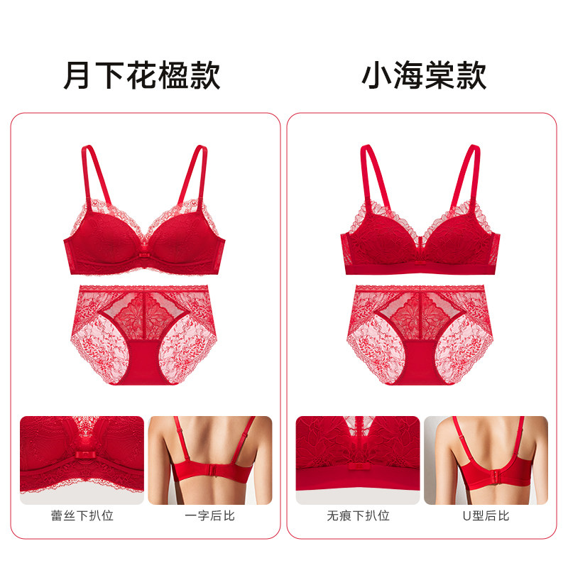 曼妮芬红色内衣套装性感蕾丝刺绣文胸内裤女结婚新娘本命年服胸罩