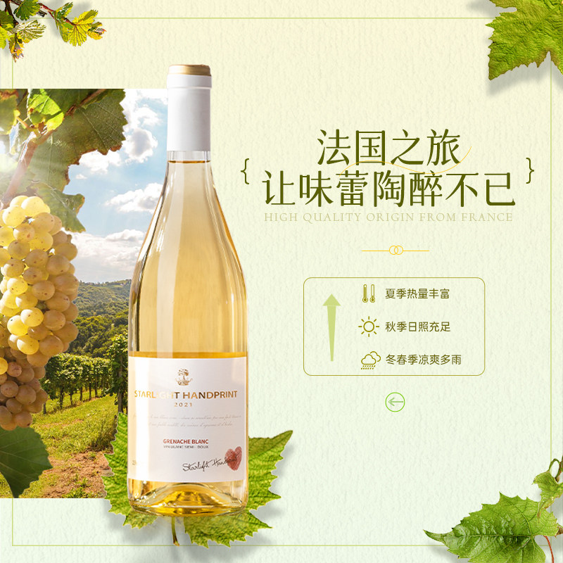 法国进口半甜白葡萄酒12.5度微醺果酒聚会自饮过年送礼750ml