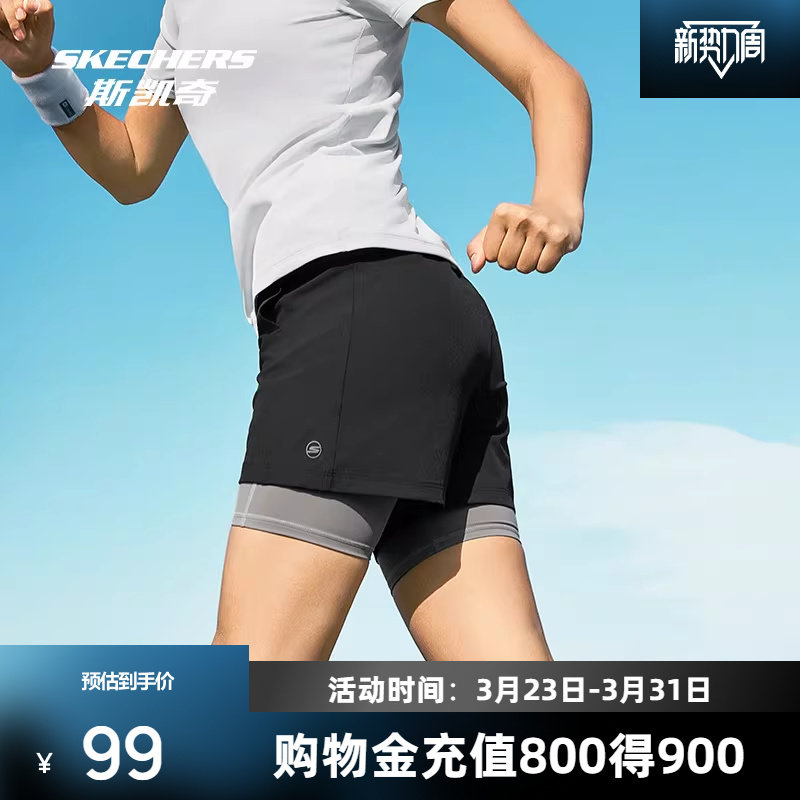 斯凯奇新品女子速干梭织运动短裤科技吸湿速干