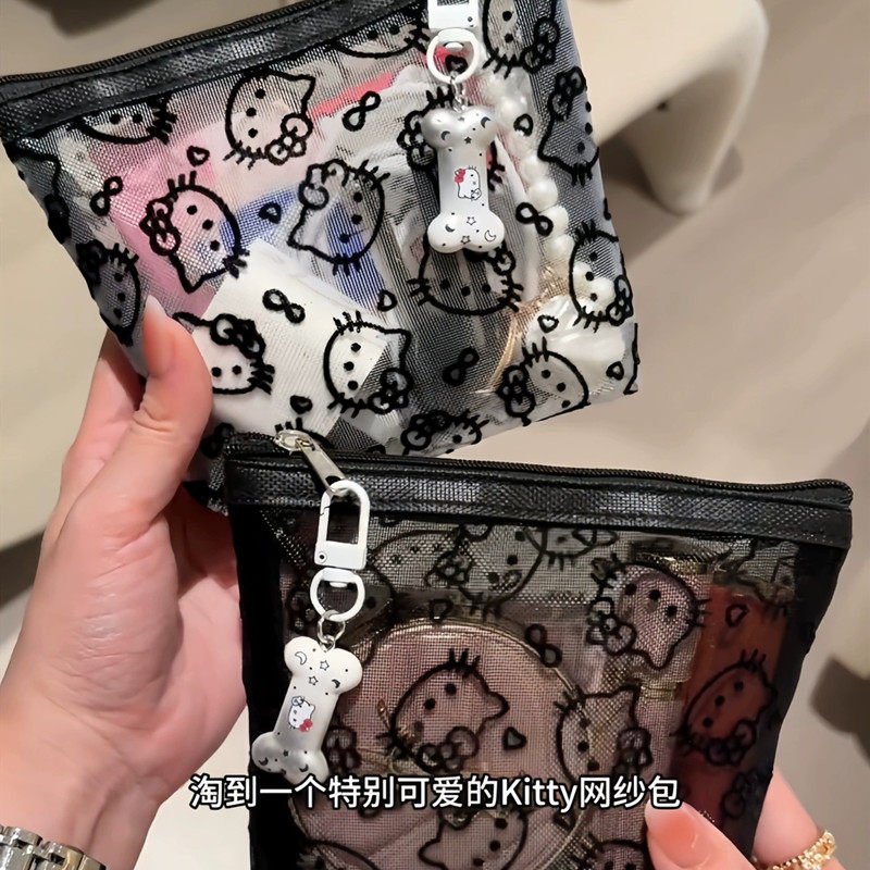 可爱kitty猫网纱化妆包透明手拿便携外出旅行收纳包随身简约包女