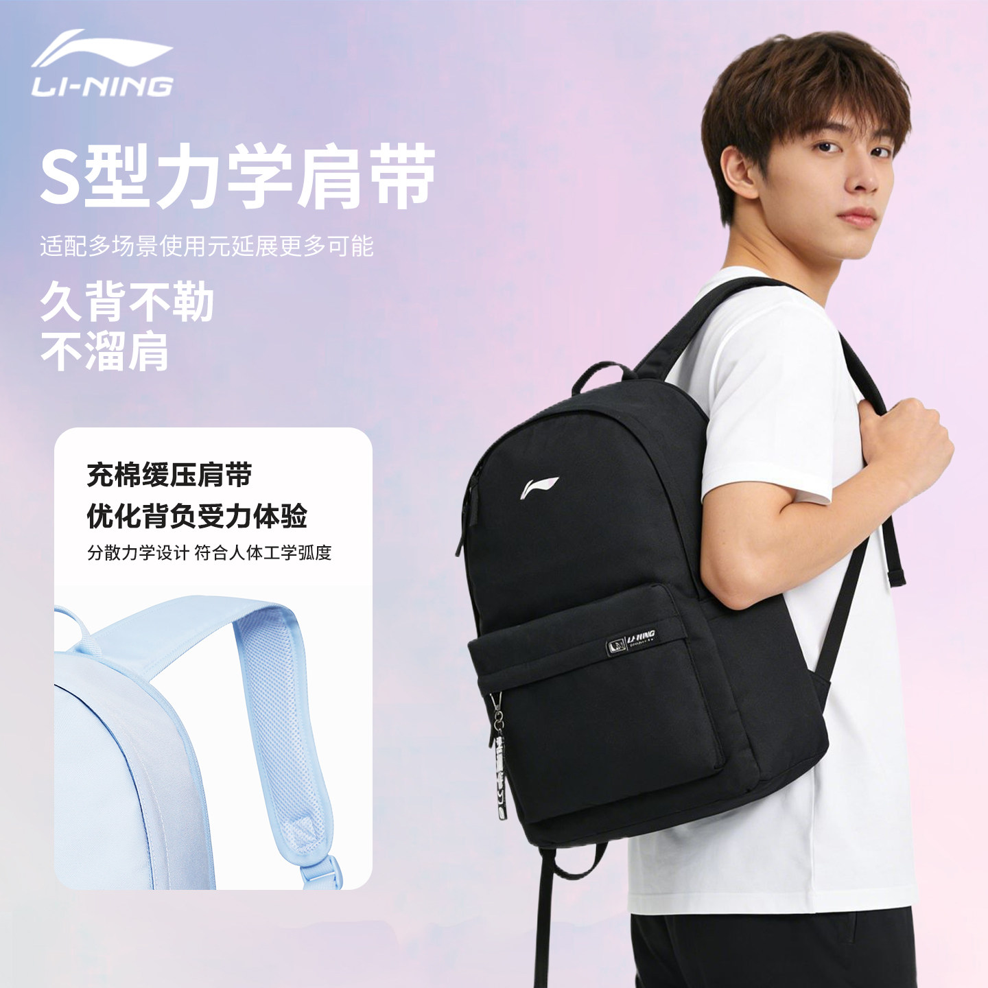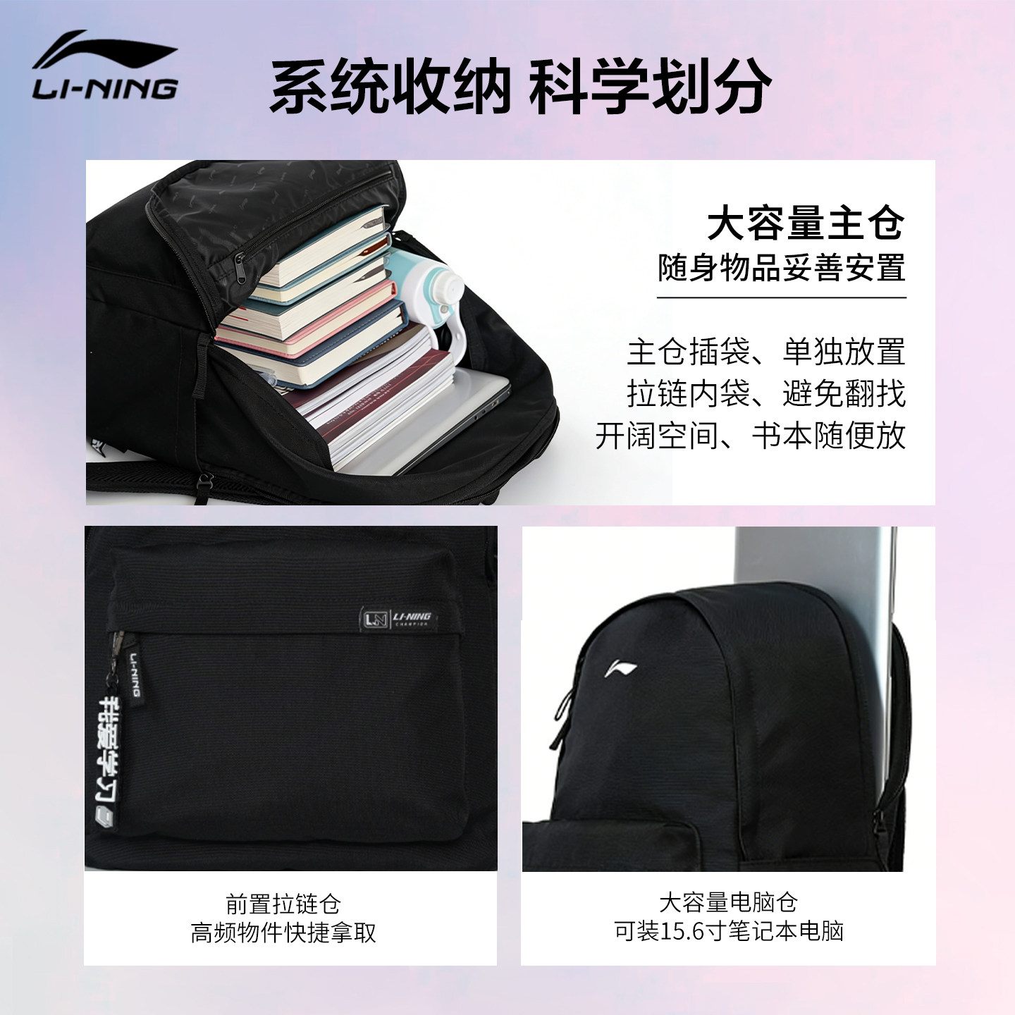 李宁双肩包初中生高中生大学生书包大容量电脑背包男女同款运动包