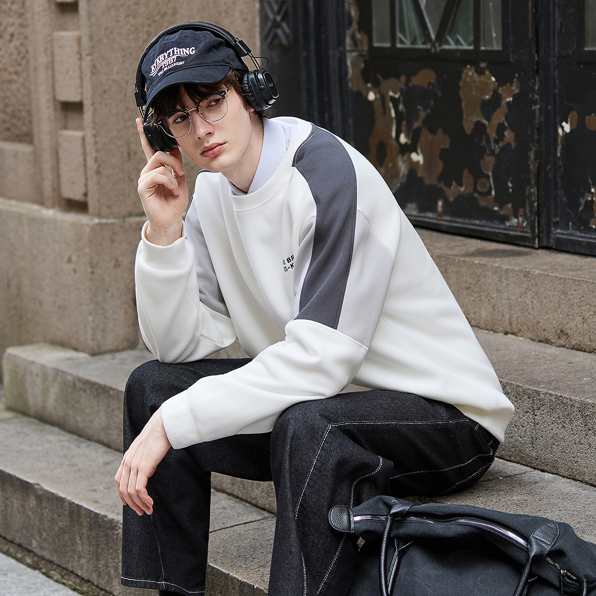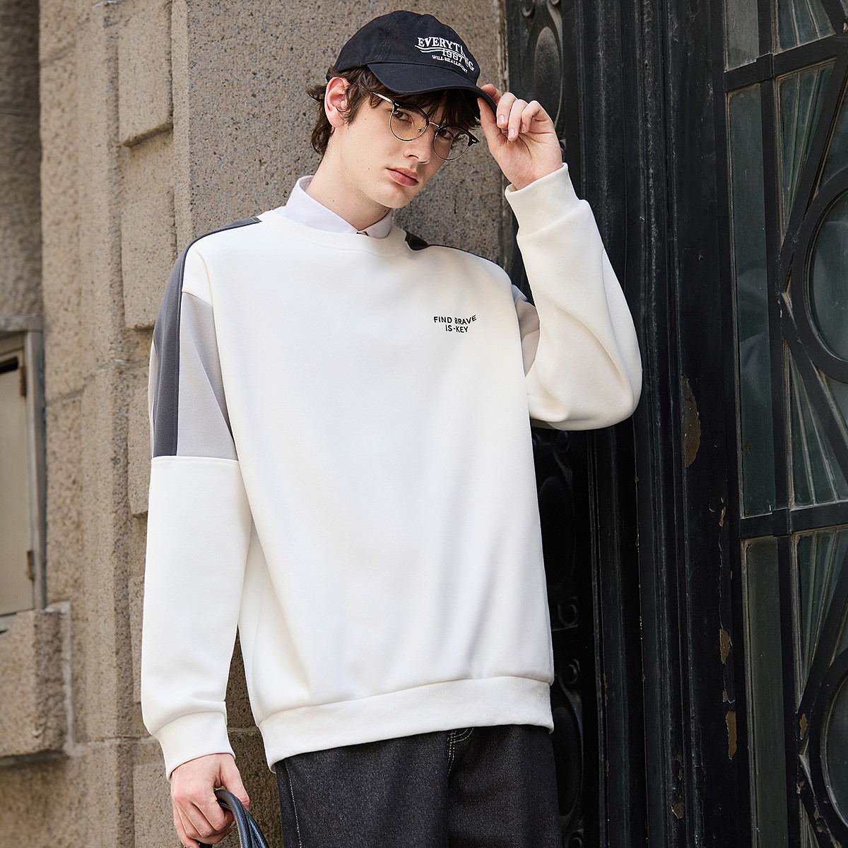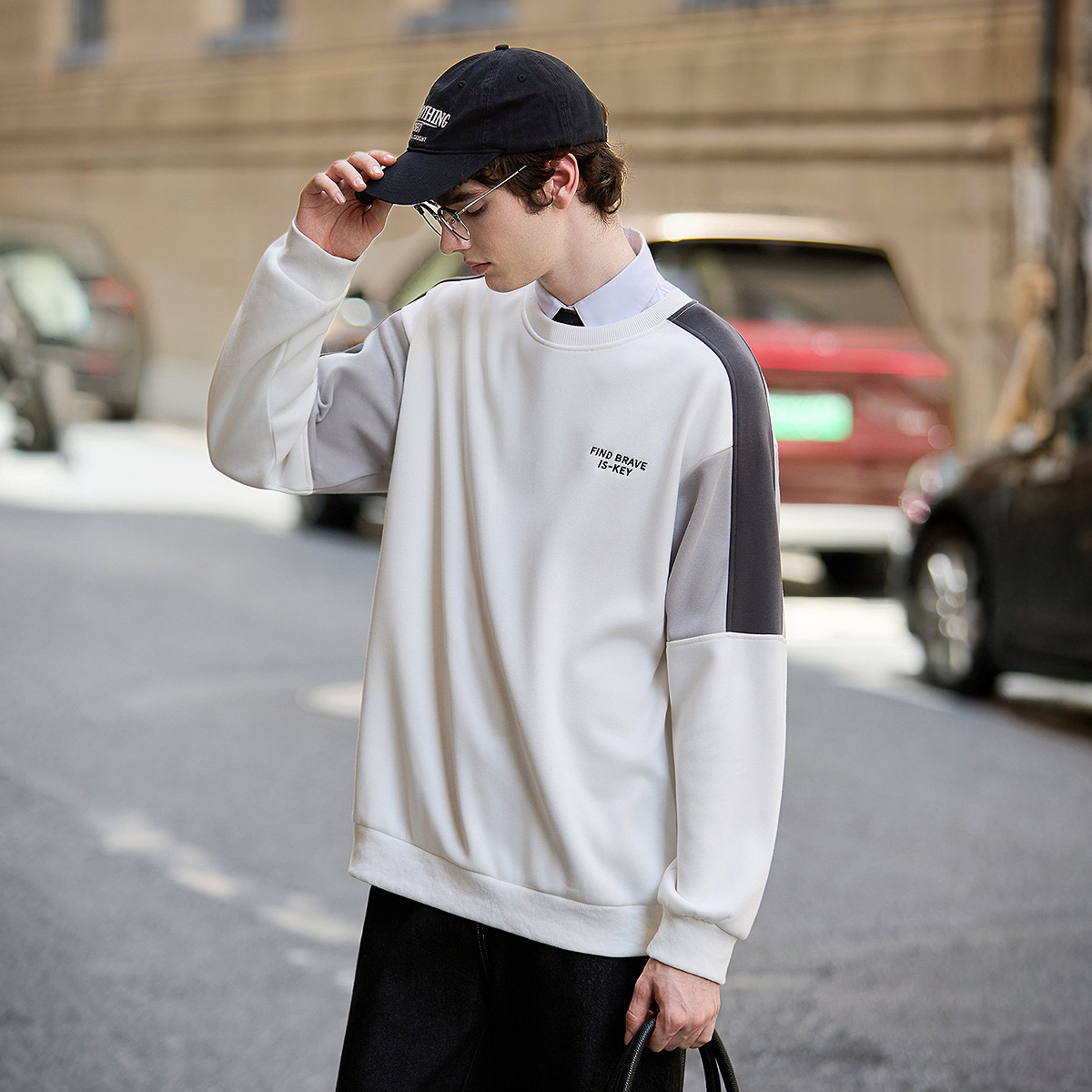 唐狮春秋季男圆领卫衣袖子拼接款运动风少年感百搭设计时尚TMTA