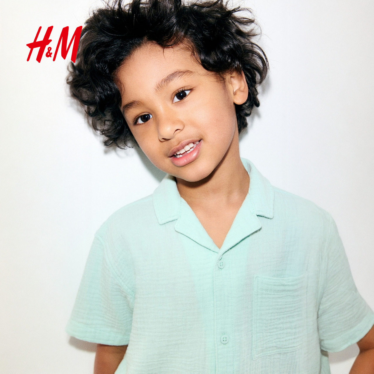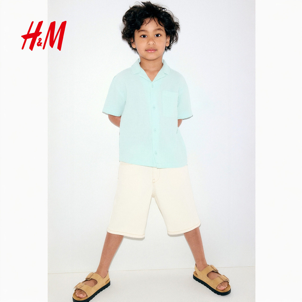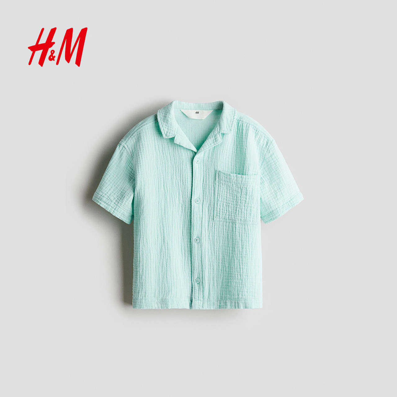 HM童装儿童男童衬衫2025年冬季时尚古巴领细棉布衬衫1274050