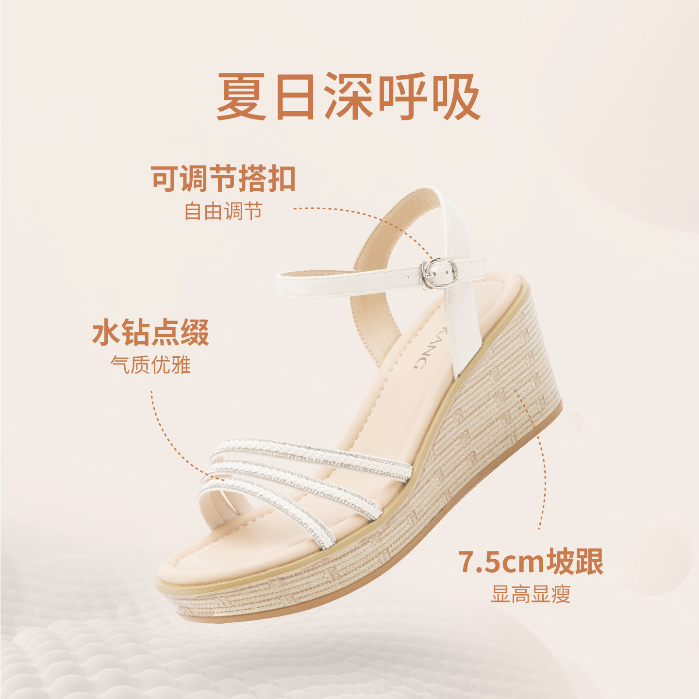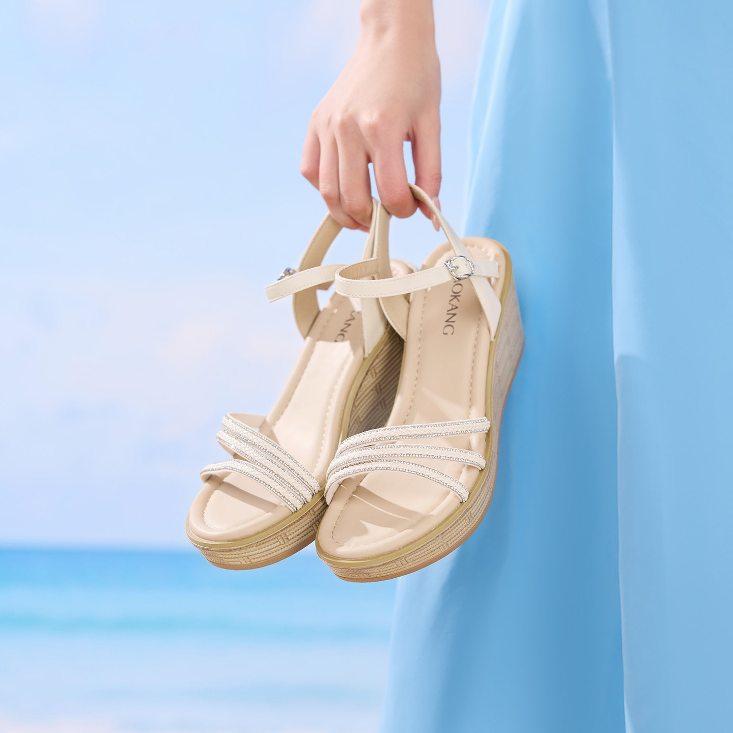 奥康 女鞋2026夏季新款坡跟凉拖罗马沙滩度假外穿凉鞋门店发货