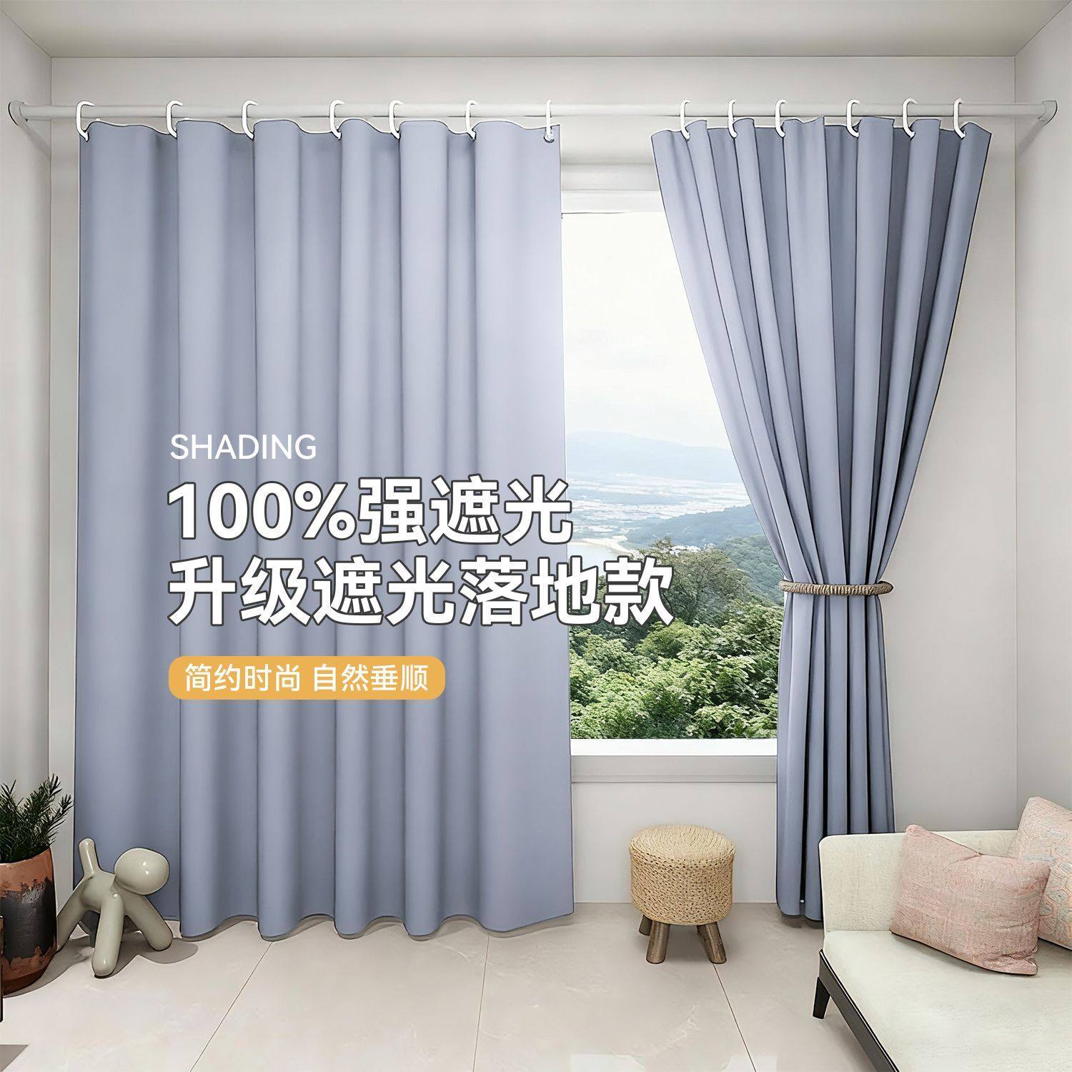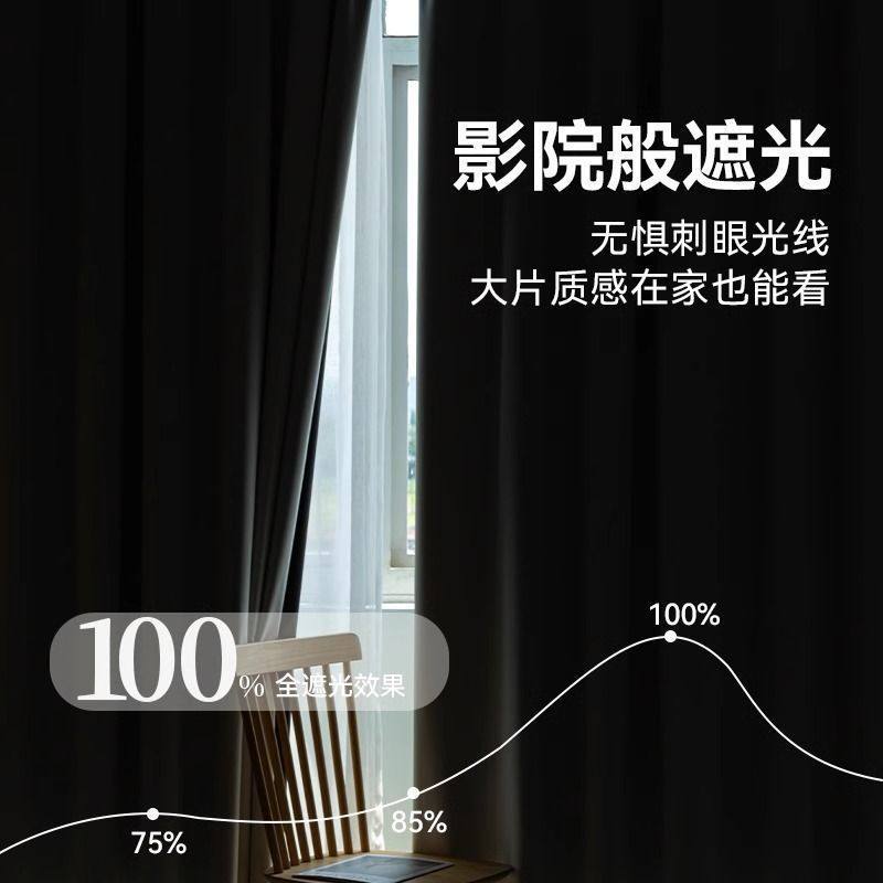 窗帘卧室客厅家用办公室挂钩免打孔落地成品遮阳帘高级感2026加厚