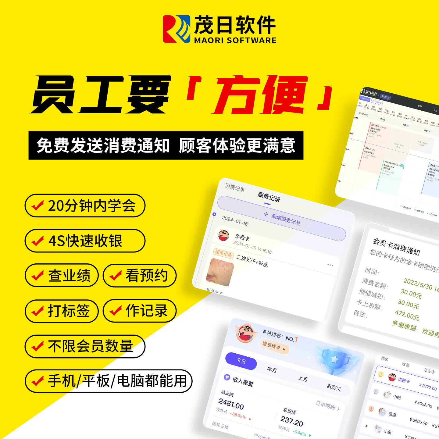 茂日会员卡管理系统美业美发理发美容院美甲美睫养生馆足浴足疗洗浴中心修脚按摩技师上下钟采耳预约收银软件