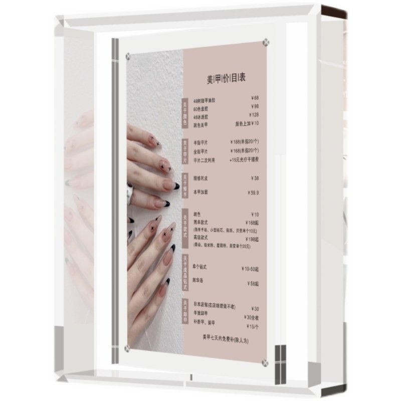 美甲美睫价格表设计美容价目表A4亚克力台卡展示牌桌面立牌定制作