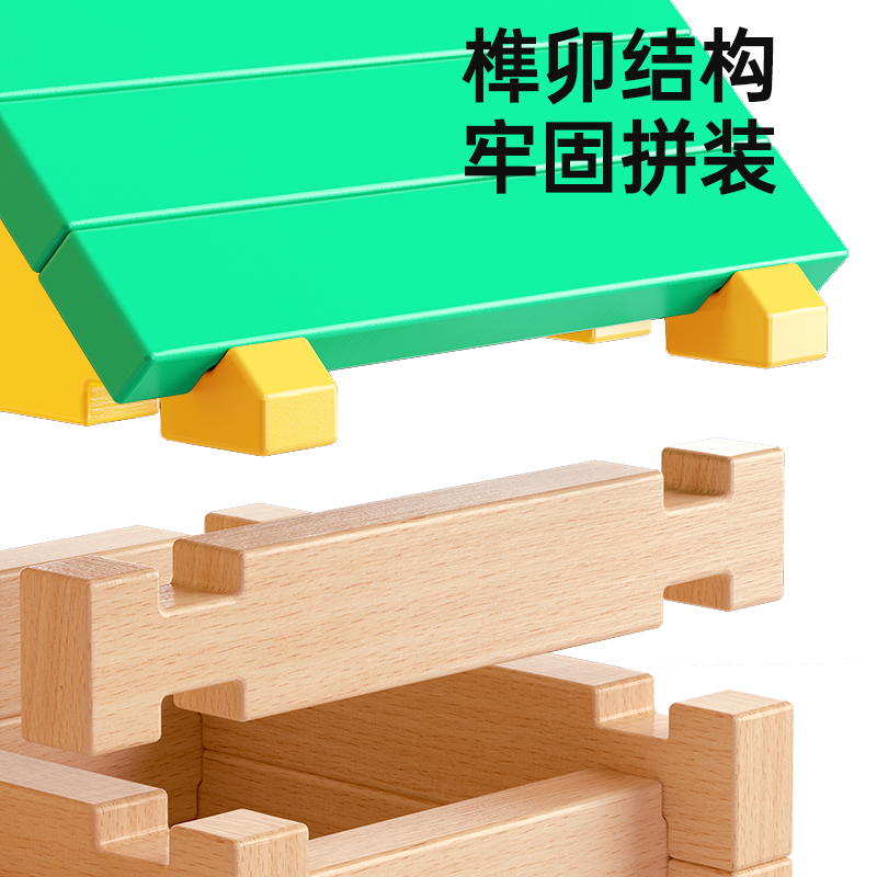 鲁班榫卯积木3到6岁大脑开发建筑结构木头搭房子儿童益智拼装玩具