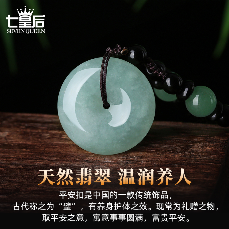 翡翠平安扣吊坠天然糯冰种玉石项链玉佩圆牌挂件正品A货玉坠男女