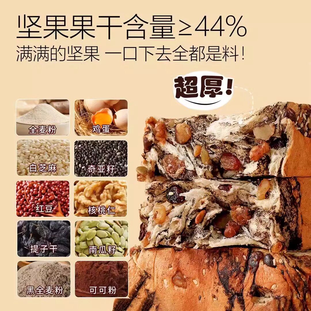 全麦坚果厚切吐司手撕面包粗粮饱腹代餐自律期速食零食整箱早餐