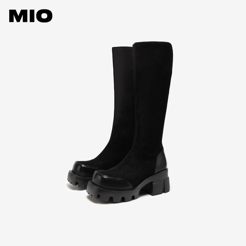 MIO米奥靴子冬季圆头套筒弹力长靴潮流个性显高厚底休闲袜靴女靴