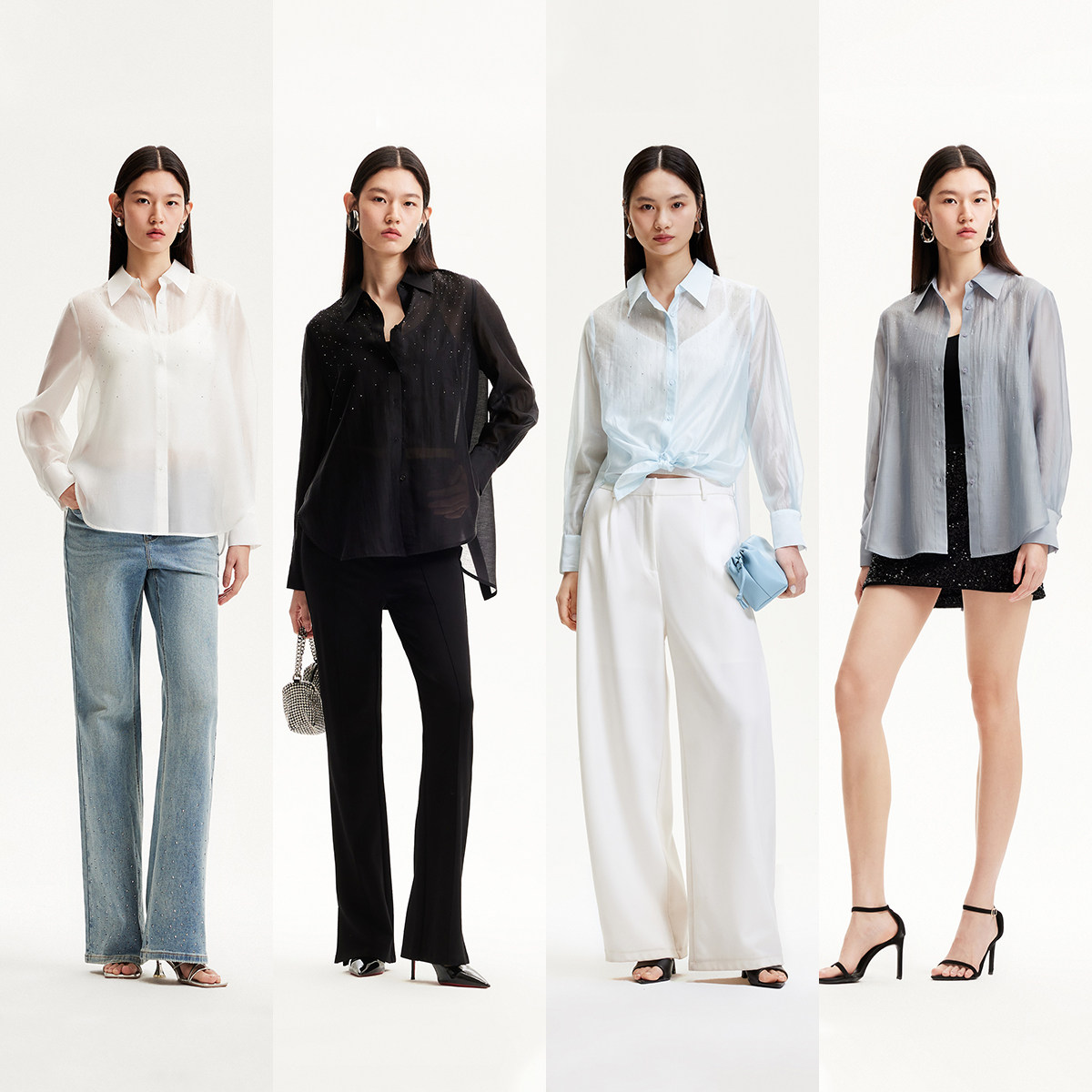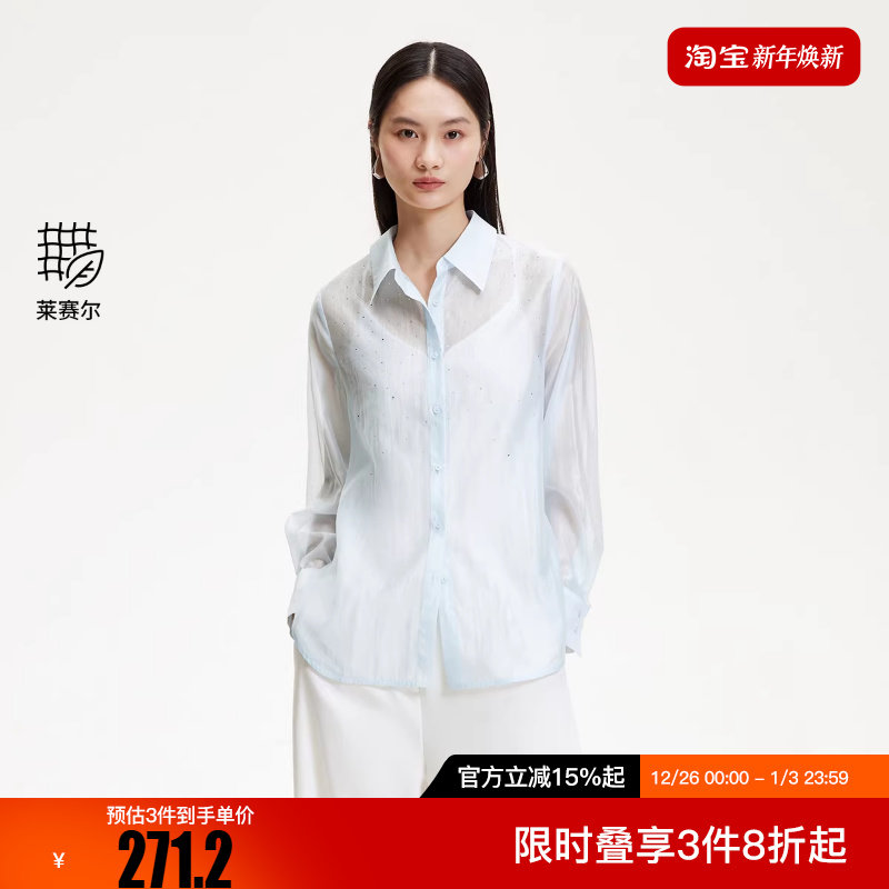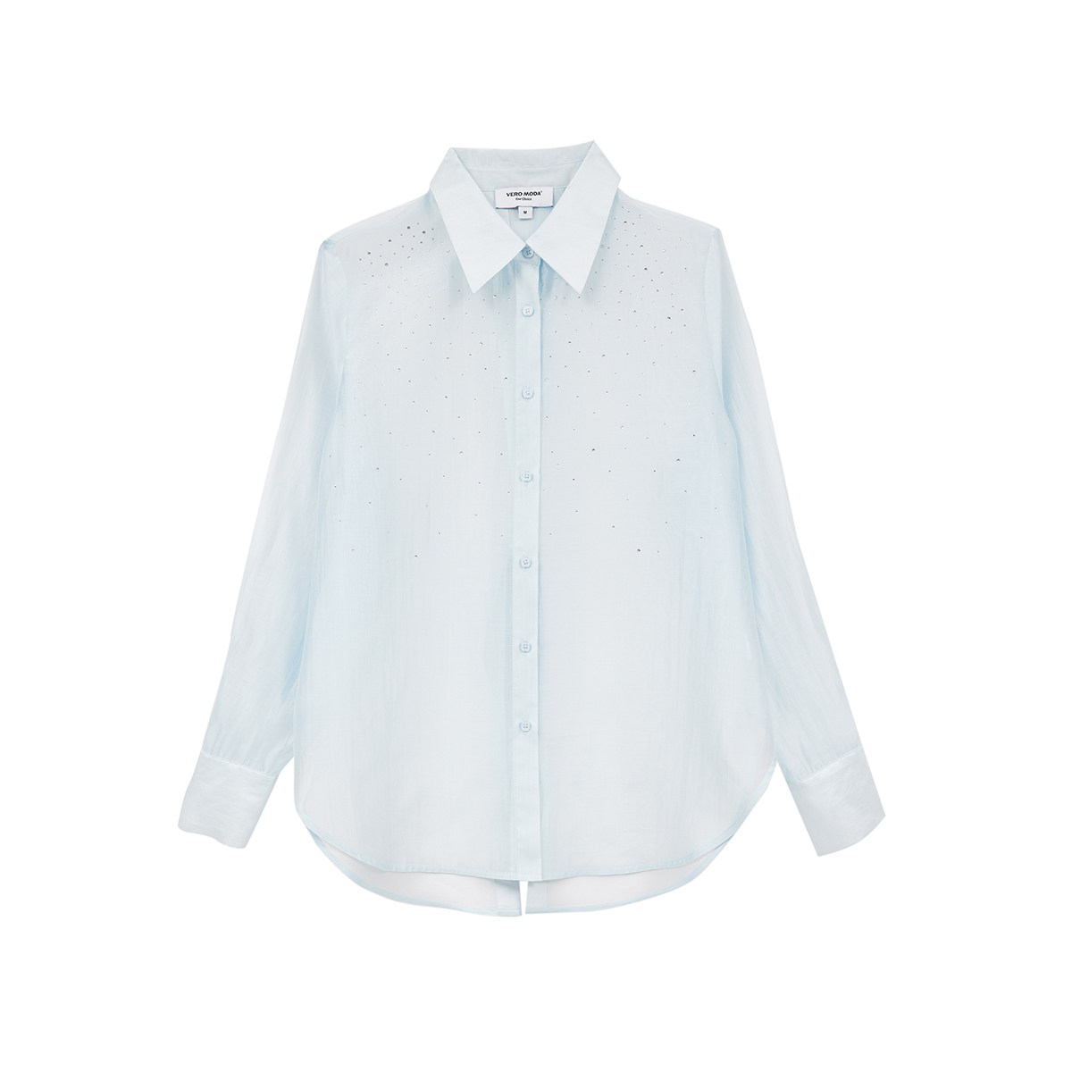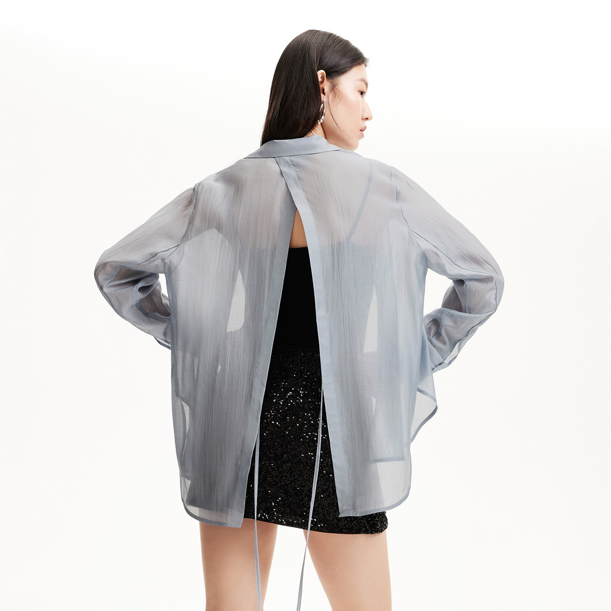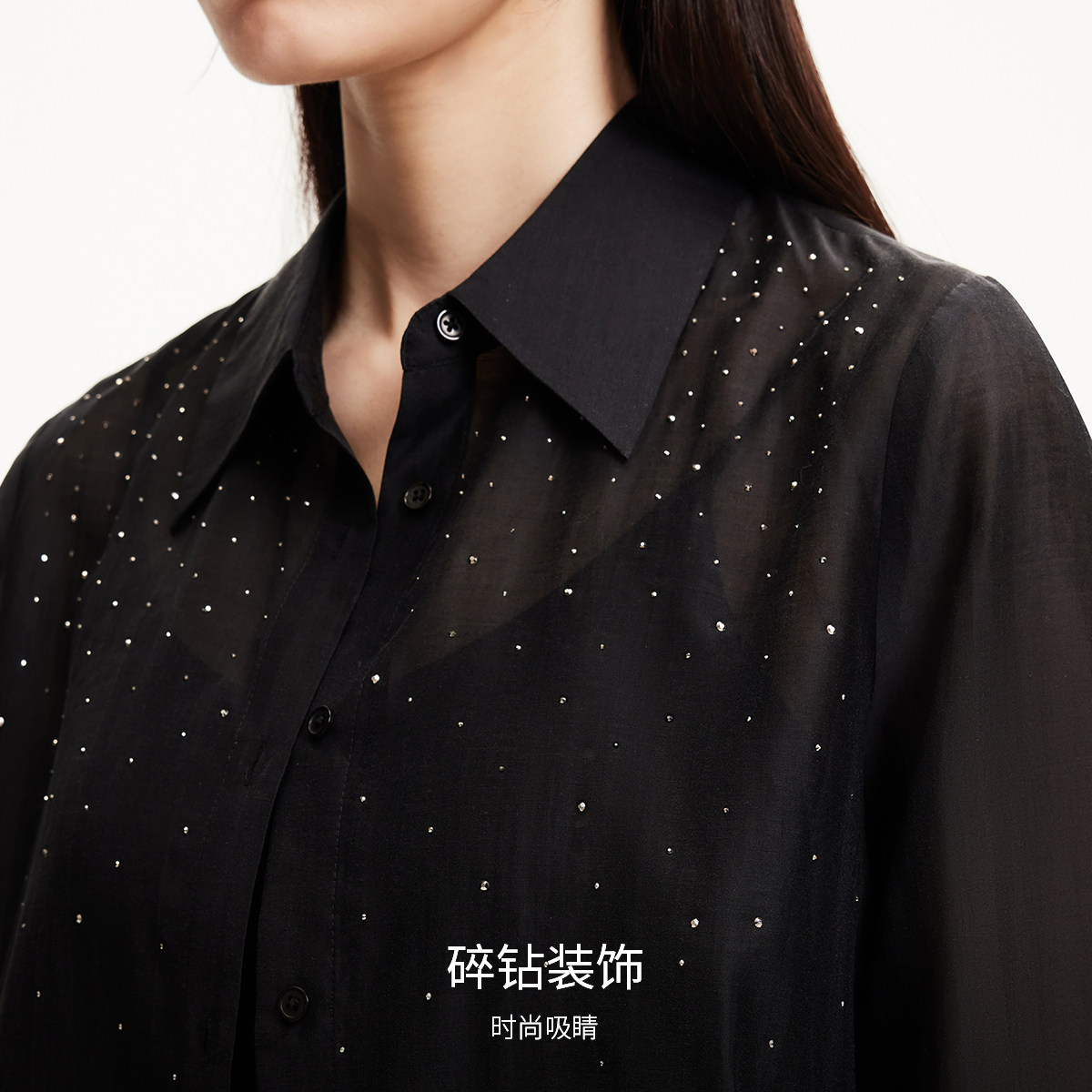 绫致Vero Moda衬衫女2025冬新烫钻微透设计后身开叉系带宽松衬衫