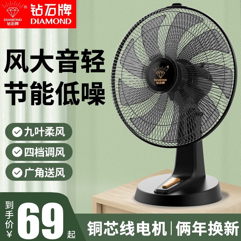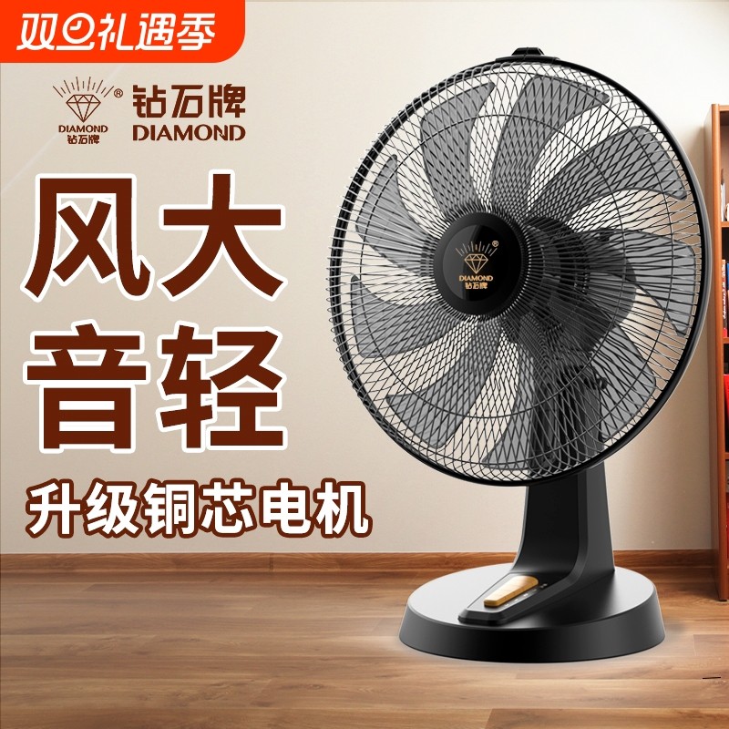 钻石牌台扇电风扇家用台立式桌面办公室宿舍静音大风力摇头小型扇