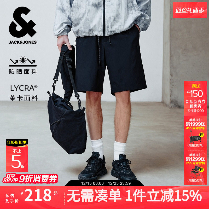 杰克琼斯秋季松紧抽绳腰头潮流时尚简约舒适百搭基础宽松短裤男装