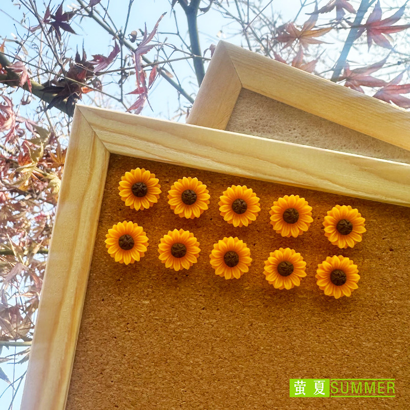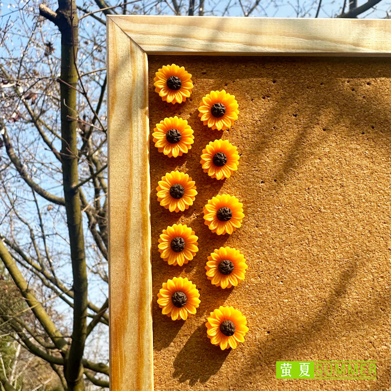 10个创意图钉向日葵小雏菊花朵软木毛毡照片墙留言工字小花按钉