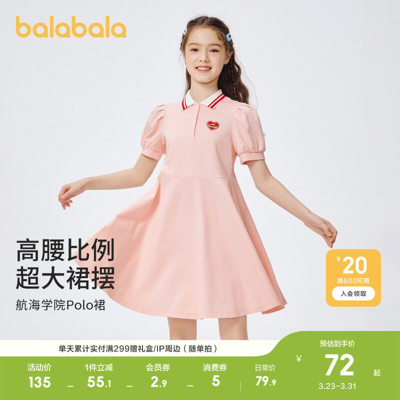 巴拉巴拉女童春夏装儿童连衣裙中大童学院风撞色洋气甜美裙子潮酷