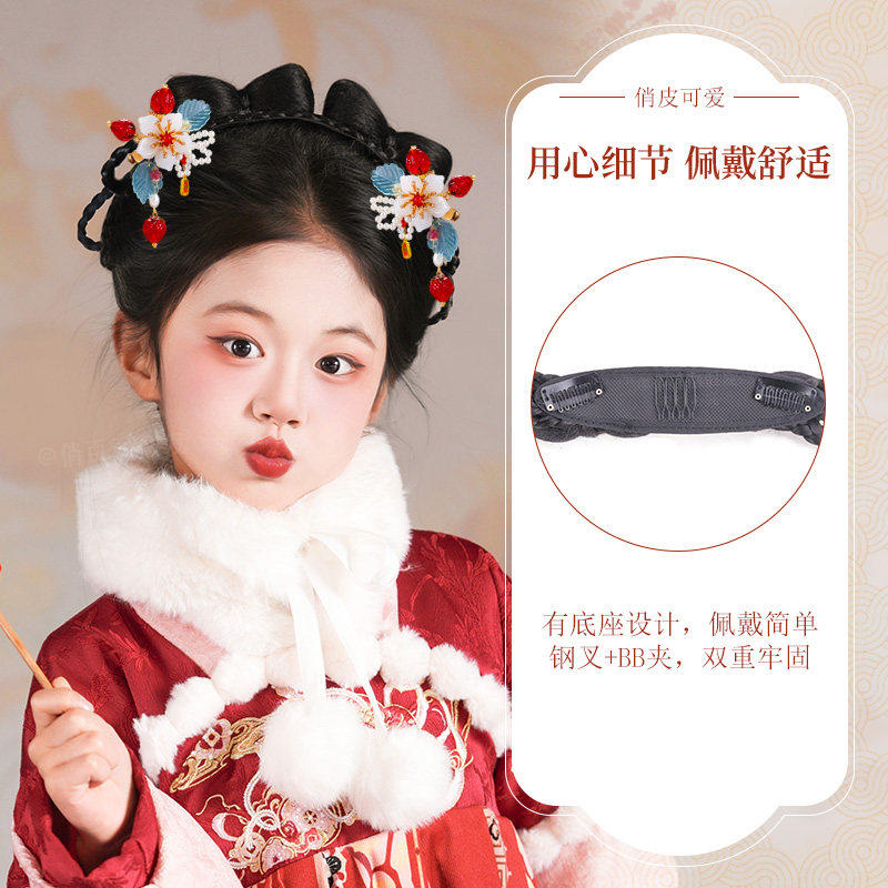 女童汉服假发古风一体式儿童假发包古装日常发髻造型盘发新年头饰