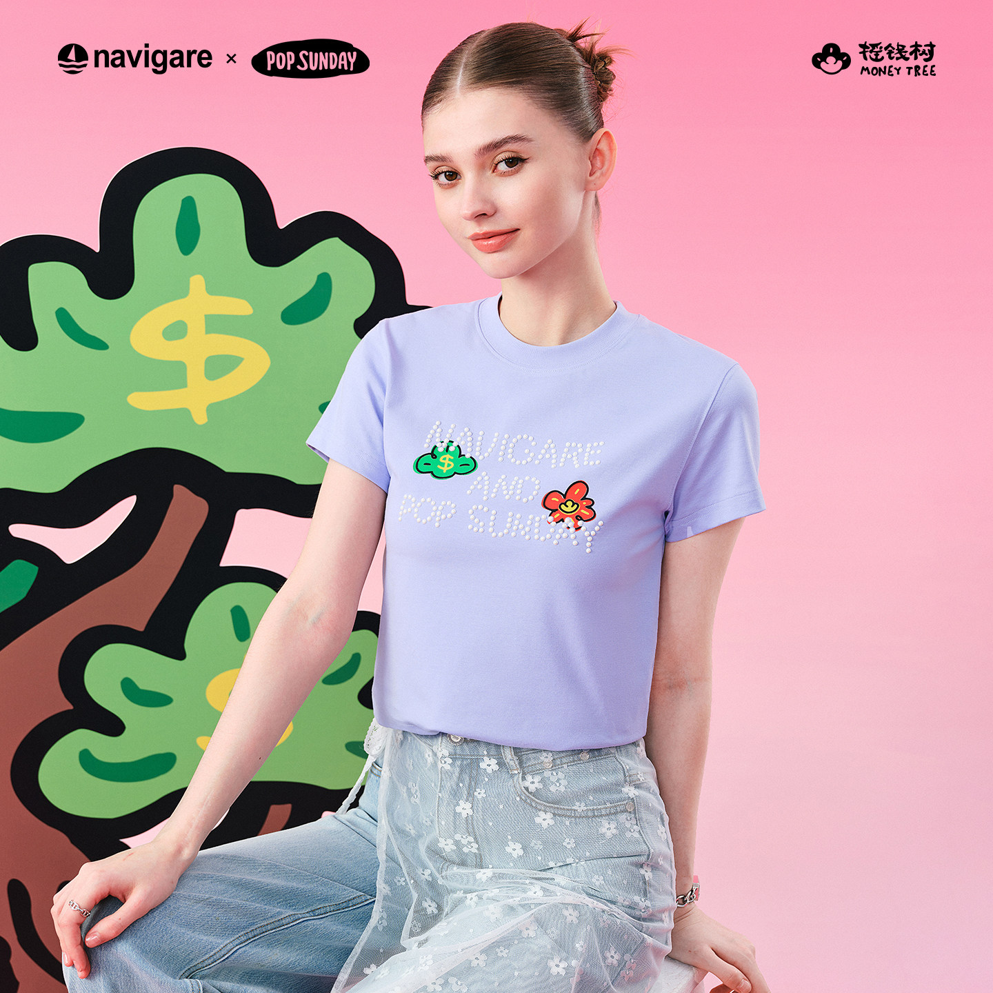 [POPSUNDAY摇钱船系列]Navigare小帆船紫色休闲短袖T恤女士套头衫