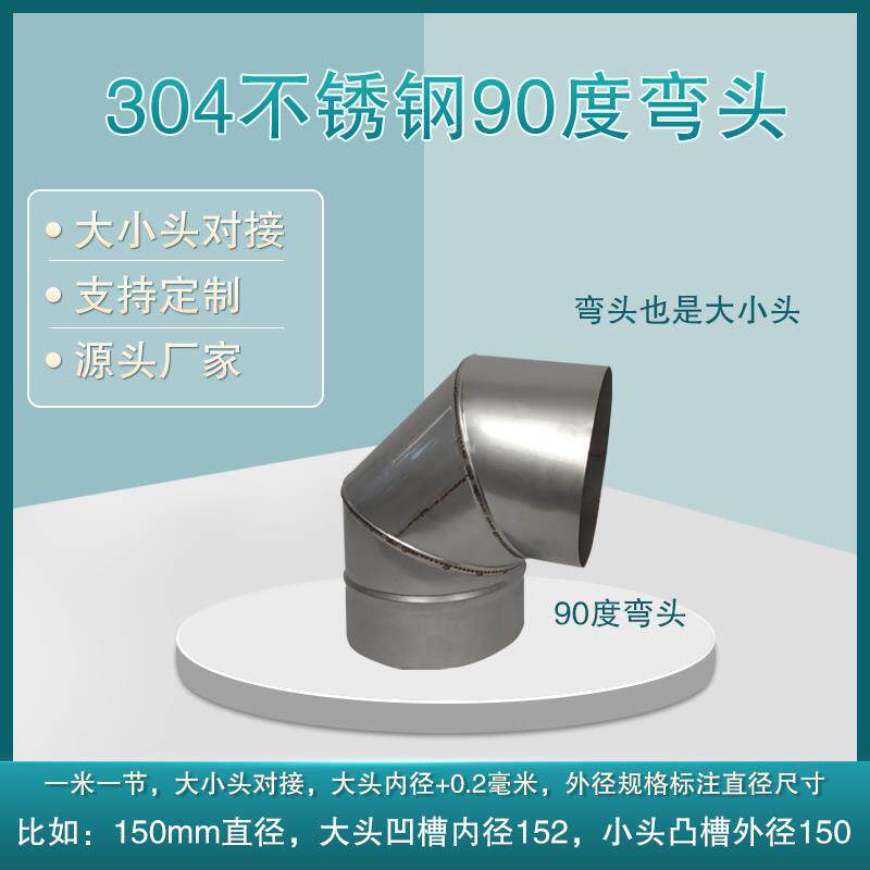 加厚304不锈钢烟囱排烟管道三通度弯头雨帽油烟机壁炉通风排气筒