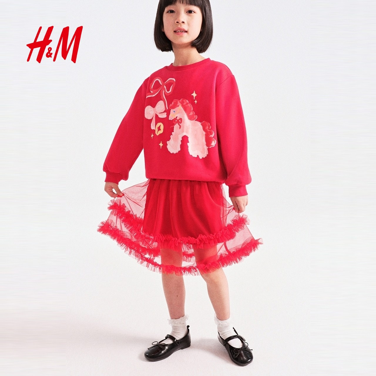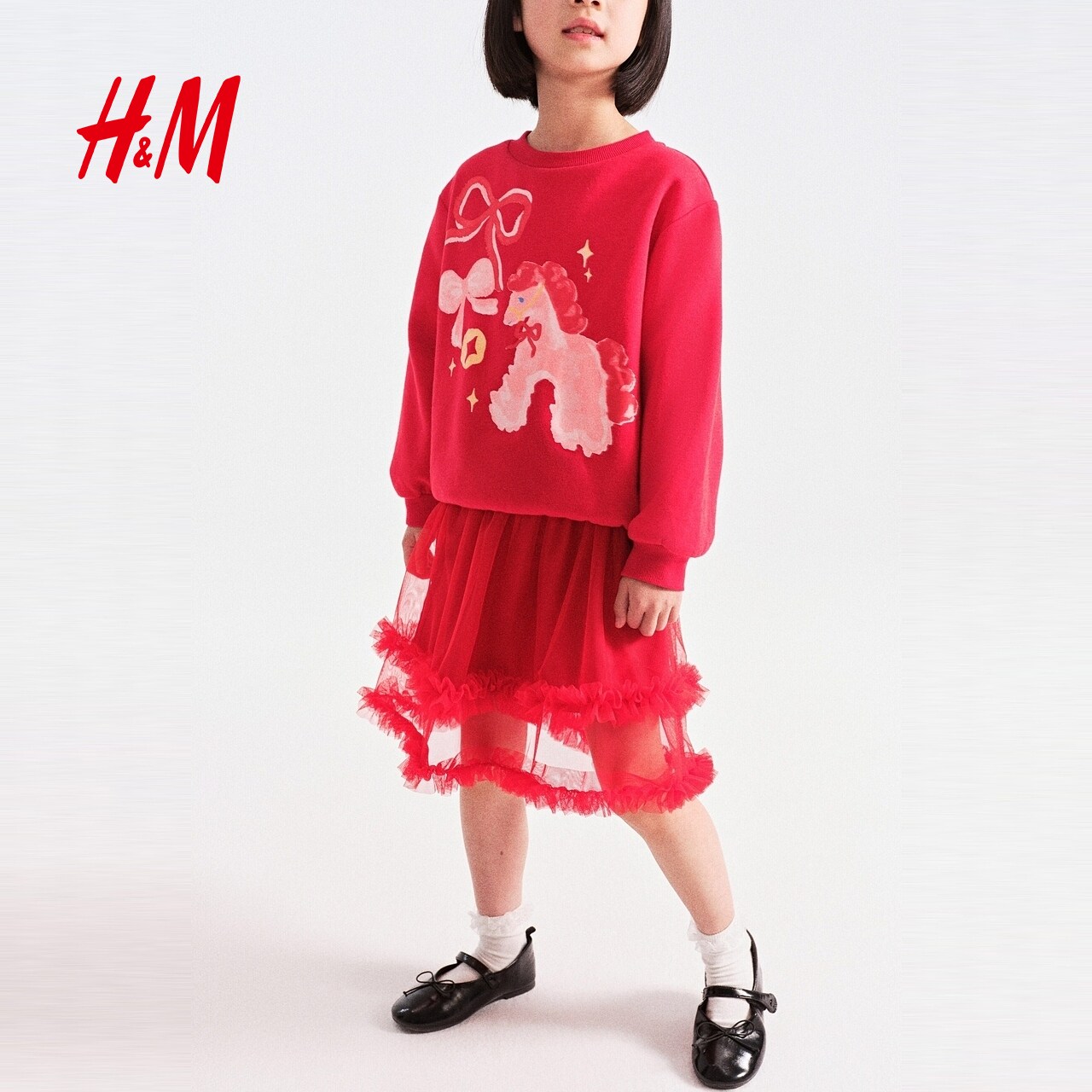 HM童装儿童女童裙子2026春季新款户外出游宽松长半身裙1313972