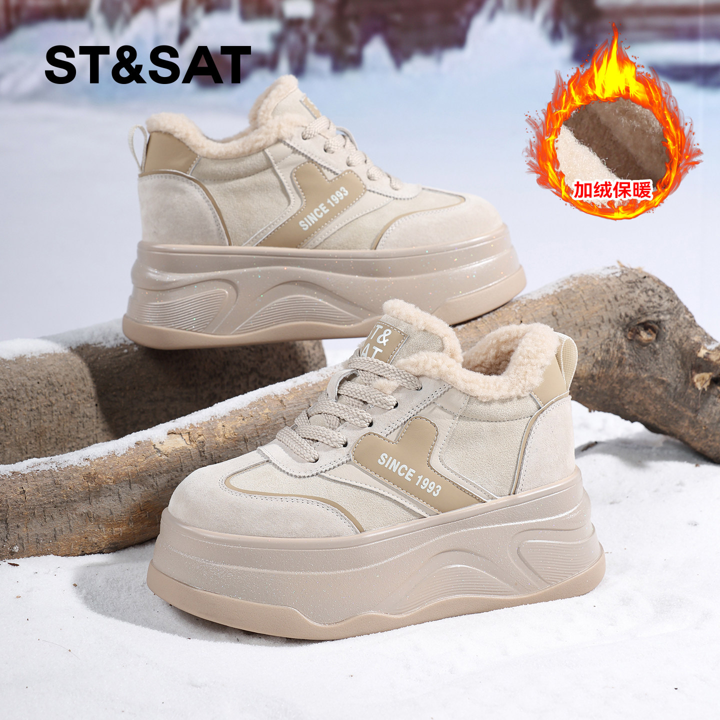 星期六小白鞋女款2025新款冬季加绒保暖高帮板鞋小个子增高大棉鞋