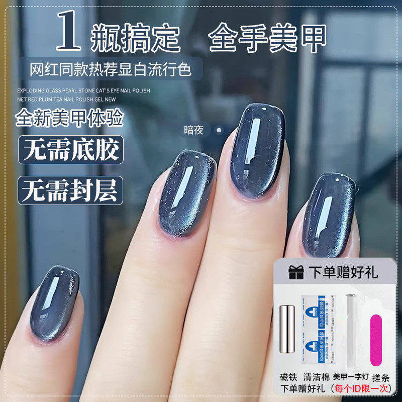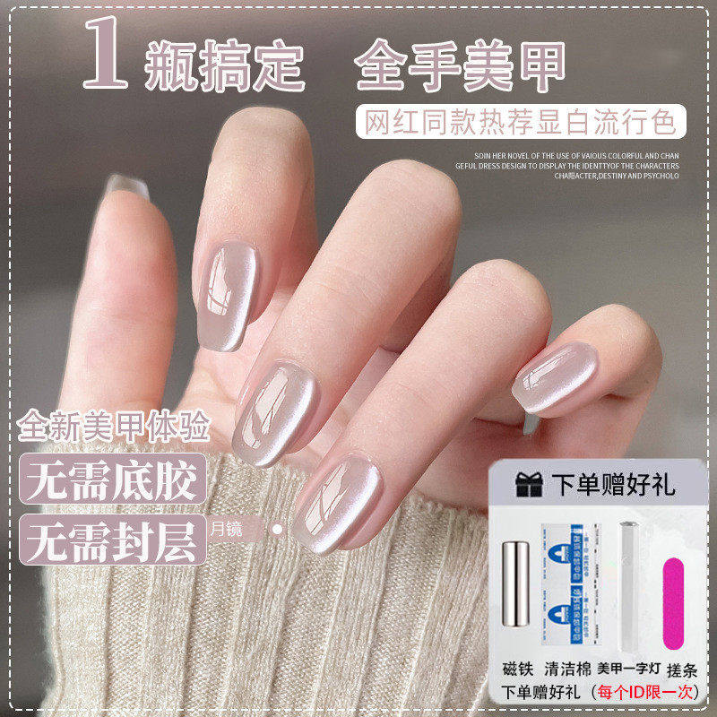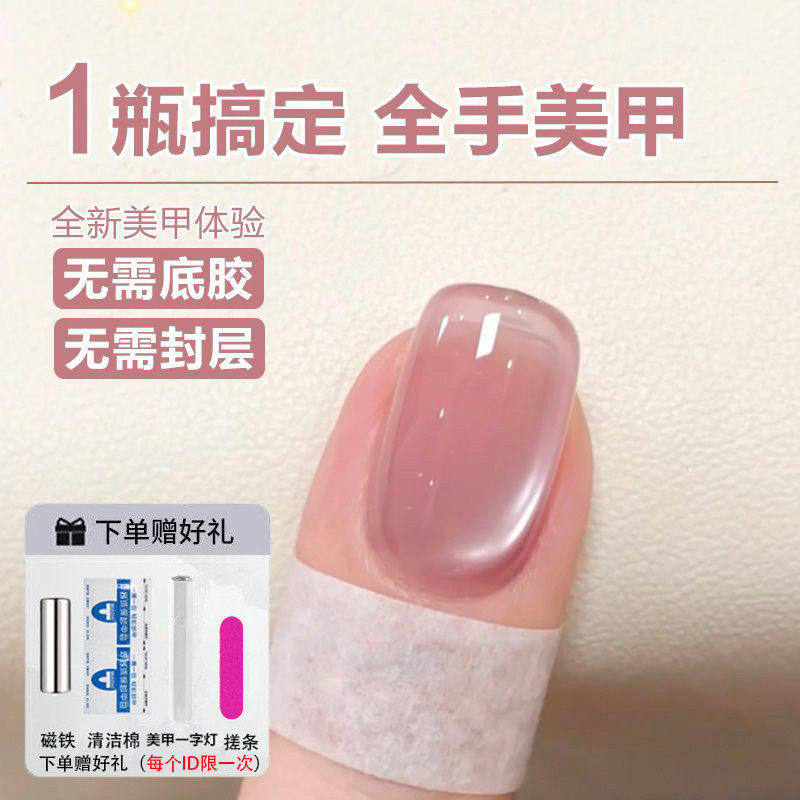 三合一懒人一步胶玻璃珠猫眼指甲油胶夏季建构五合一免底胶封层胶