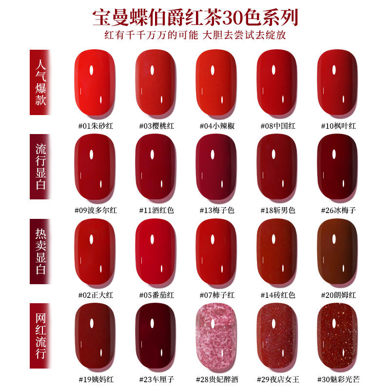 秋冬新年红色系指甲油胶2026年新款车厘子酒红色美甲店专用光疗胶