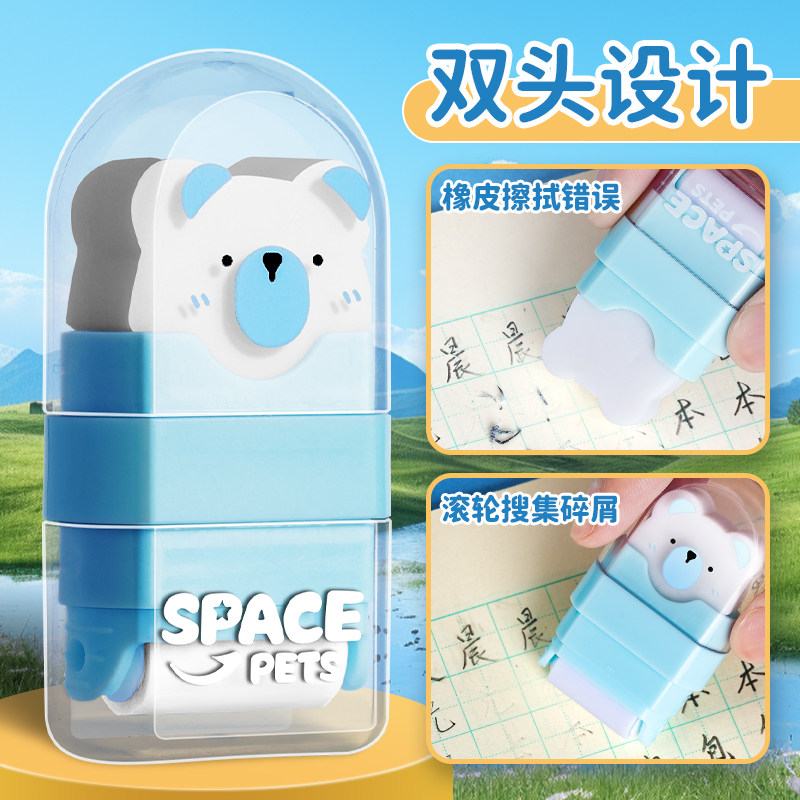可爱卡通创意滚轮橡皮 学生专用无屑超干净