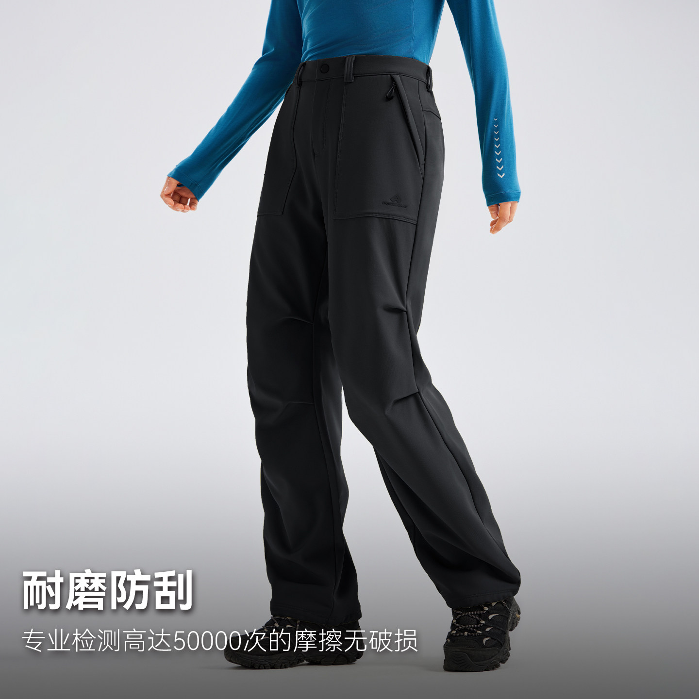 拓路者秋冬加绒软壳裤女户外防风保暖伞兵裤加厚褶皱宽松登山长裤