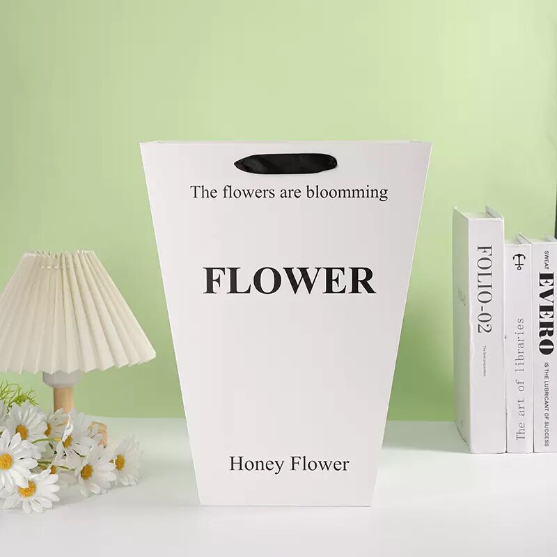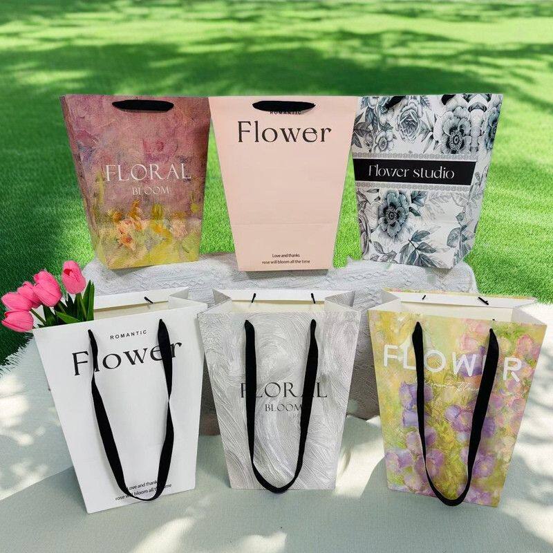 情人节油画梯形手提袋鲜花礼物花店包装礼品袋花束方形牛皮纸法式