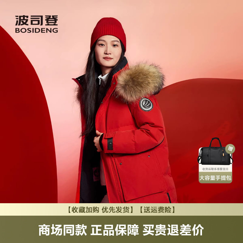 波司登爆款工装情侣毛领保暖加厚长款鹅绒羽绒服B40142300QB