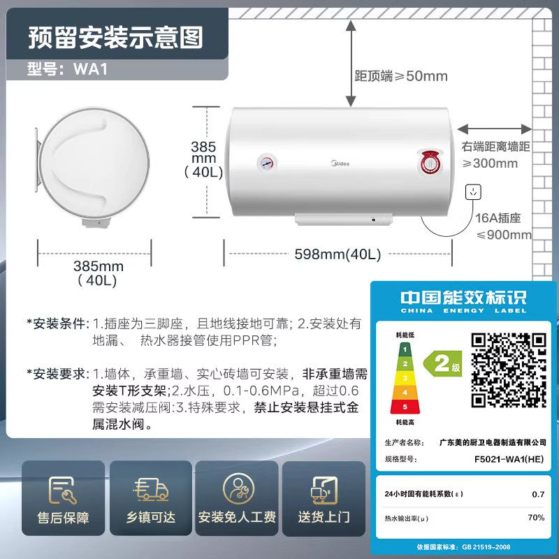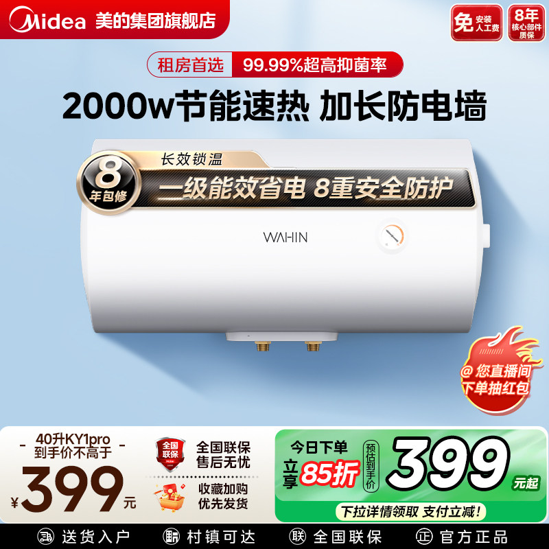 美的华凌小型KY1pro电热水器官方家用洗澡卫生间节能40/50/60升