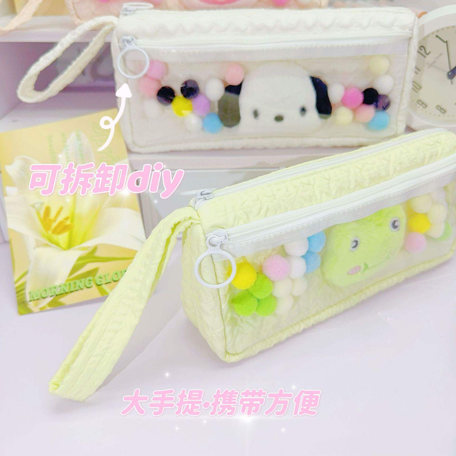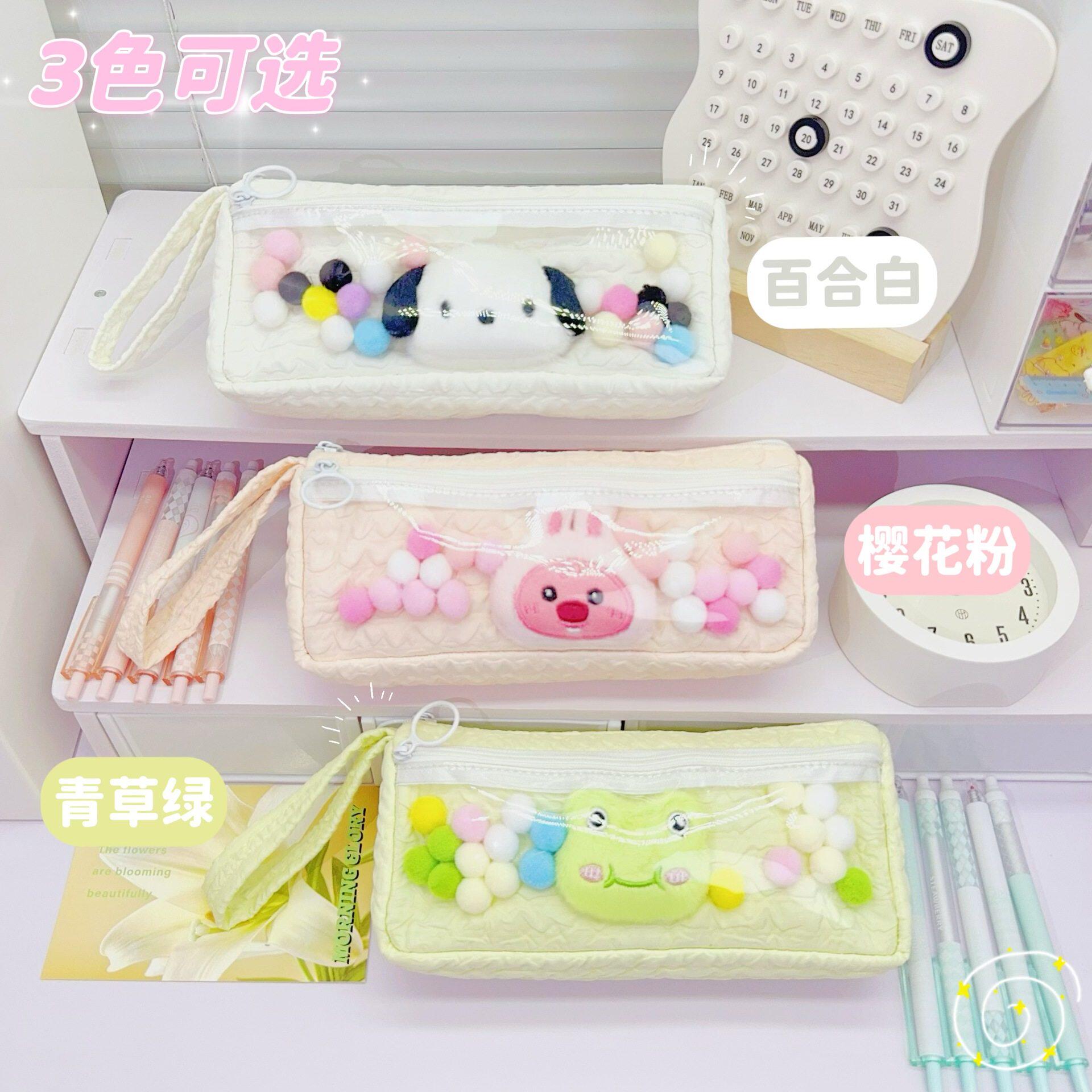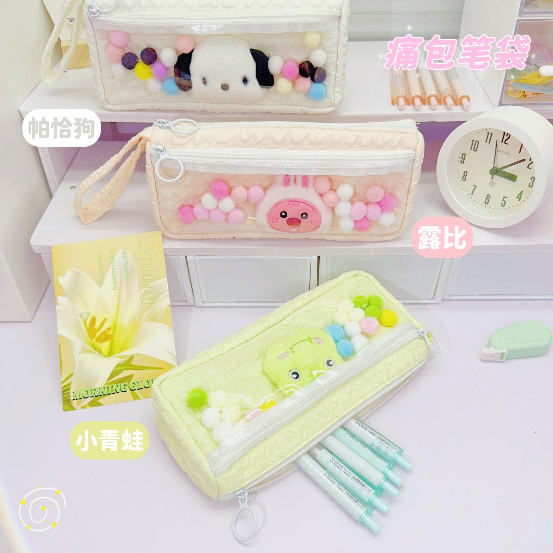 简约小清新学生用文具收纳袋卡通可爱高颜值帕恰狗透明大容量笔袋