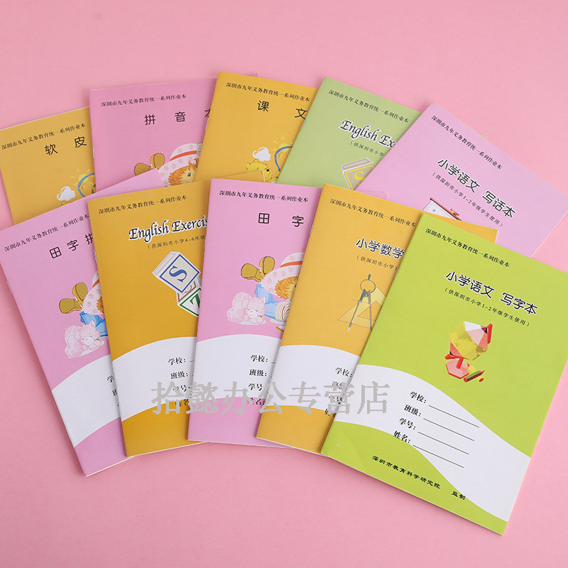 深圳市小学同步作业本小学生1-6年级学校统一作业本田字拼音数学课文写话写字本英语本3-6大作文本练字10本装