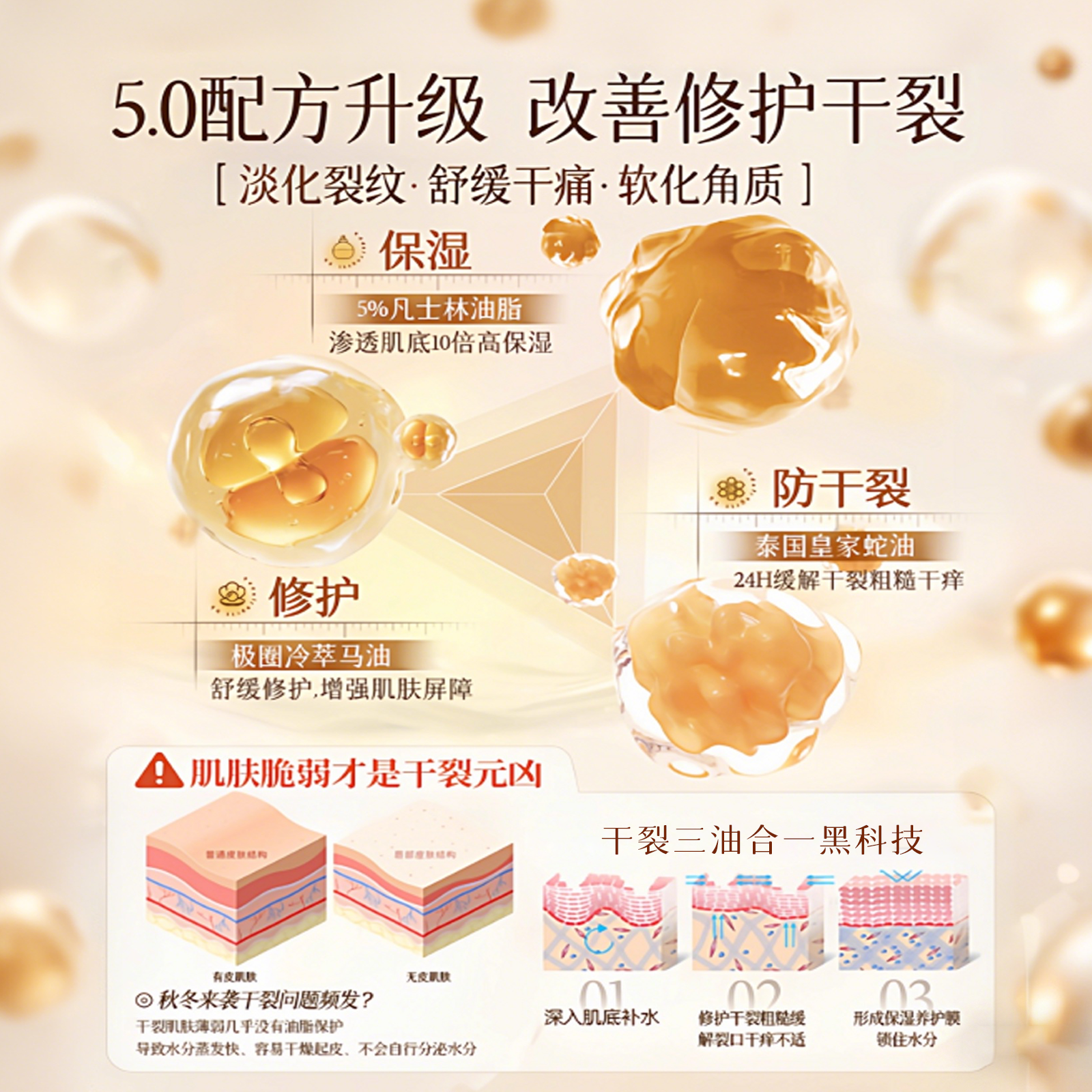 马油膏脚后跟干裂修复霜防裂补水保湿护手霜林足滋润凡士皲裂手指