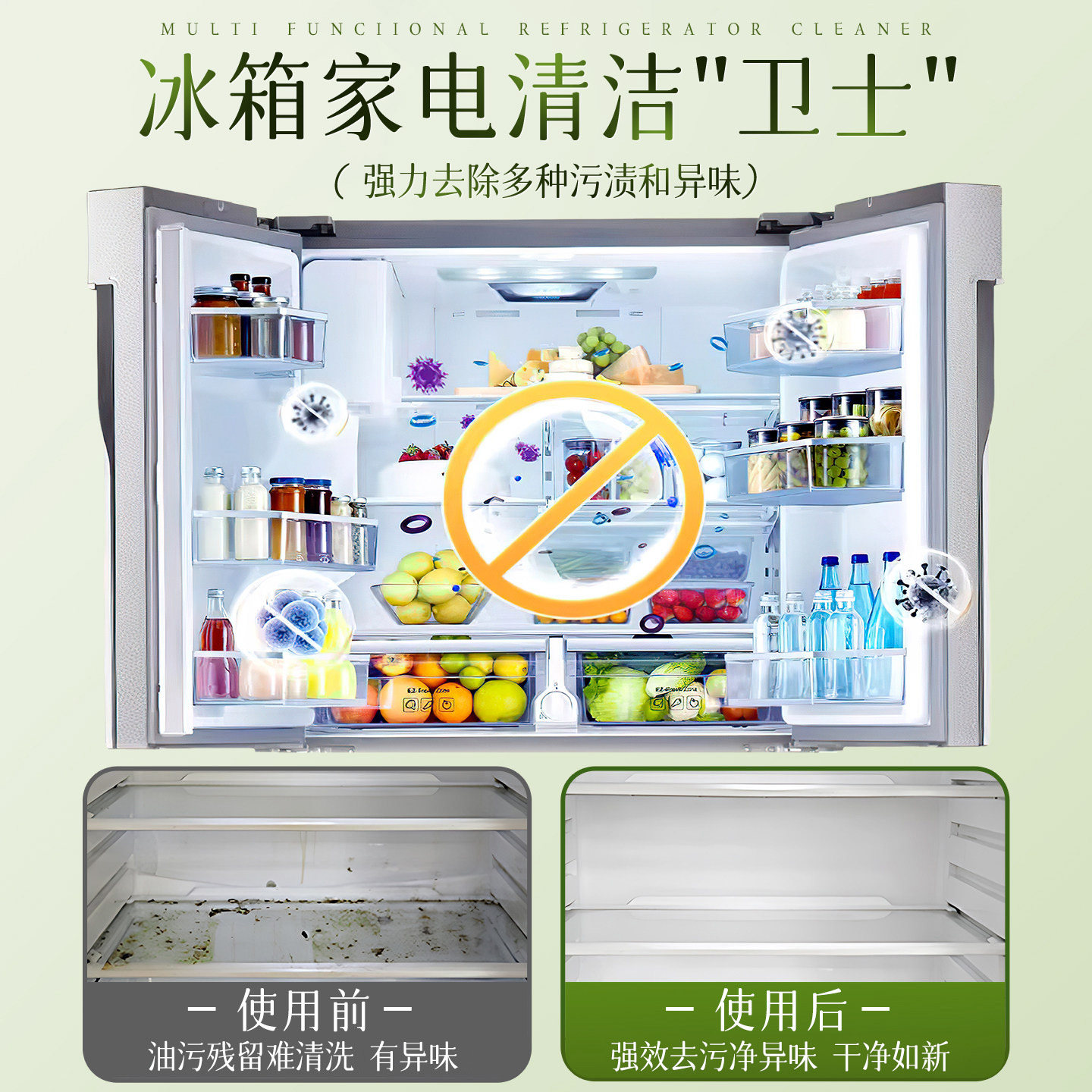 冰箱清洁剂喷雾李斯特菌消毒除味剂净化除异味厨房去污多功能清洗