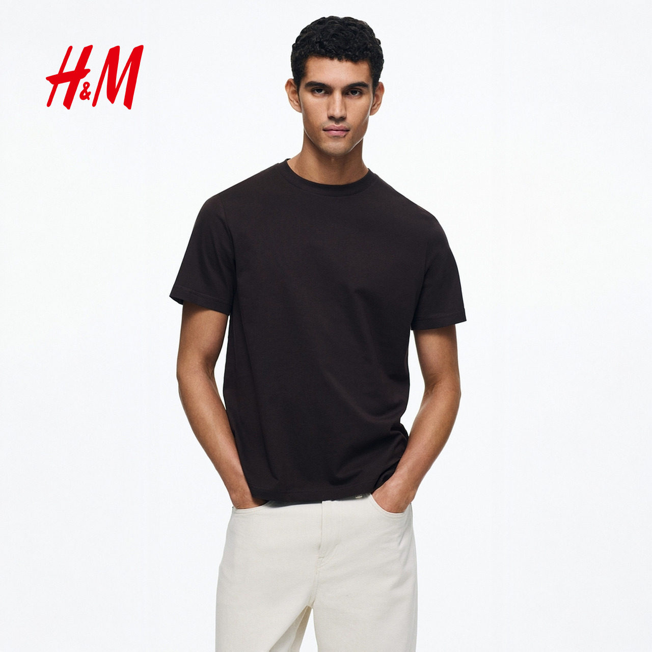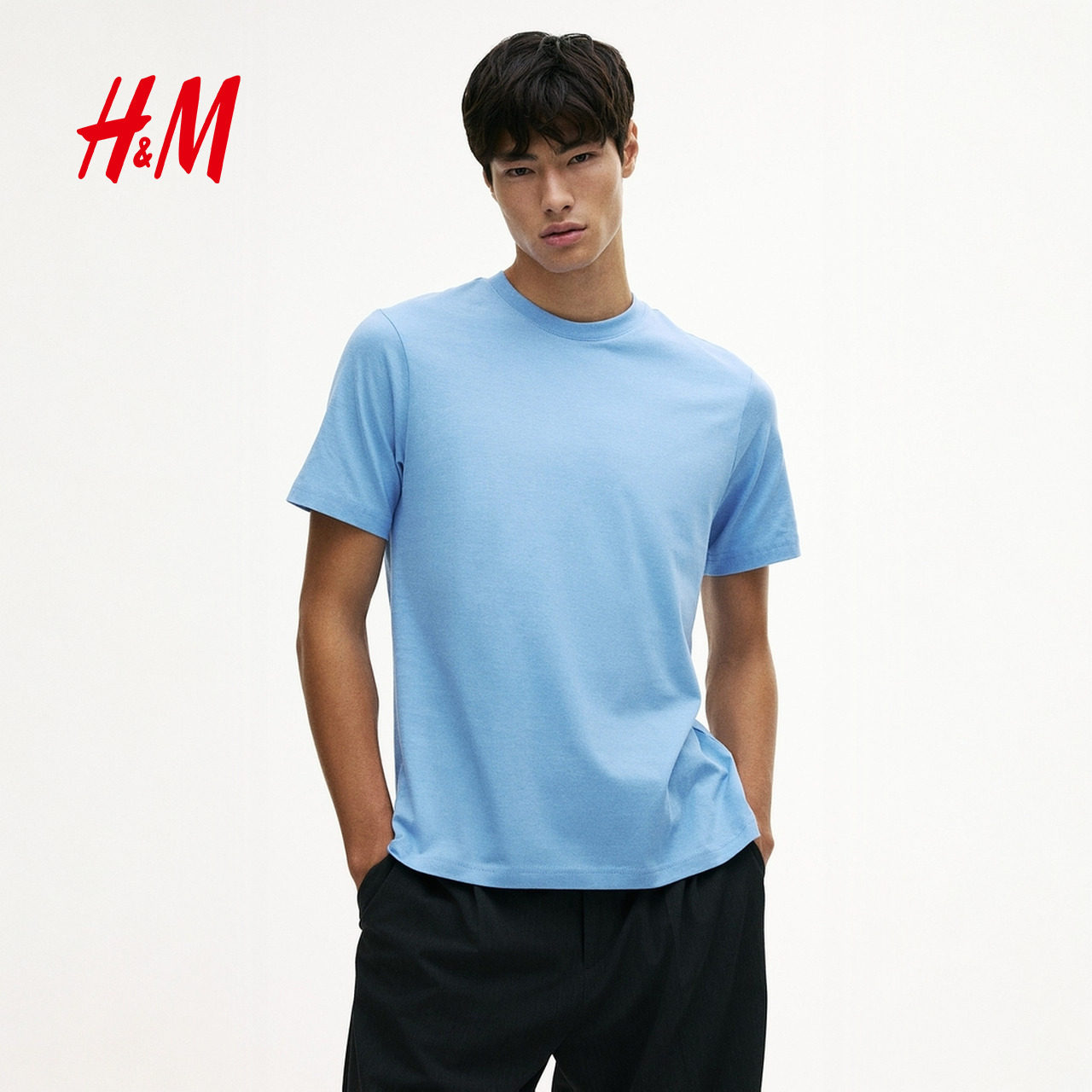 HM男装女装T恤春季透气圆领户外出游运动短袖内搭简约上衣0685816