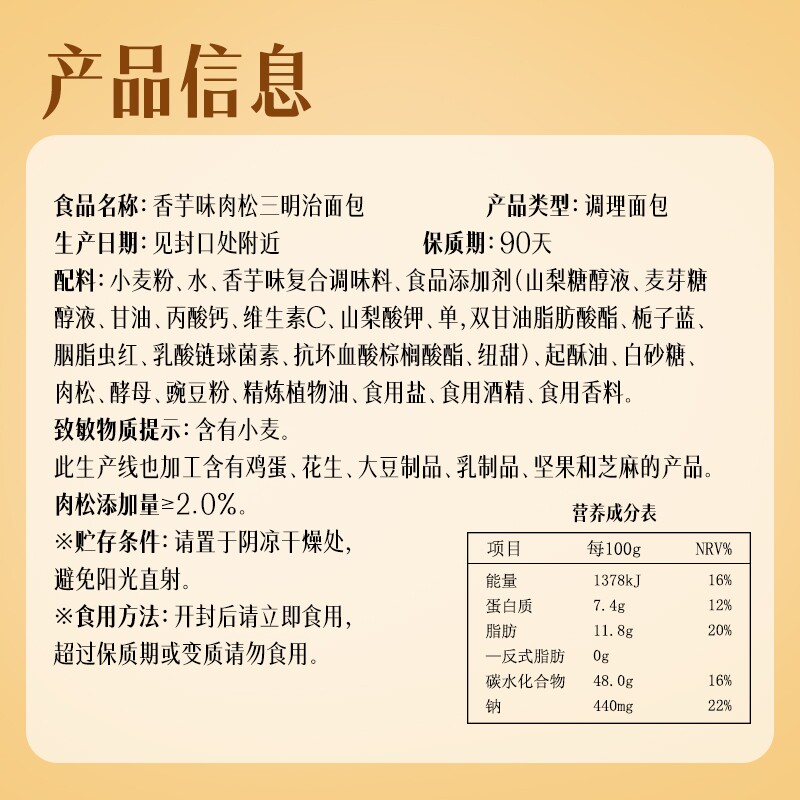 美焙辰糕点肉松三明治面包沙拉学生办公室早餐新鲜双层夹心食品