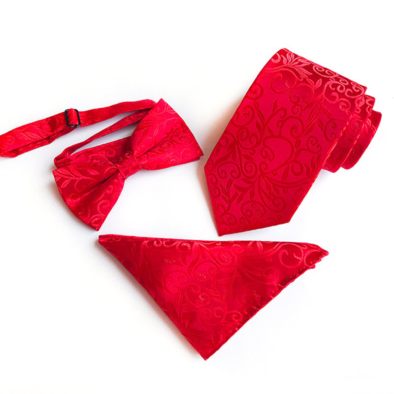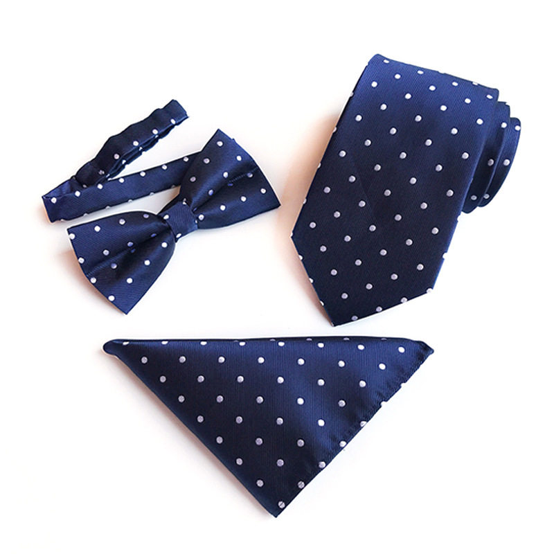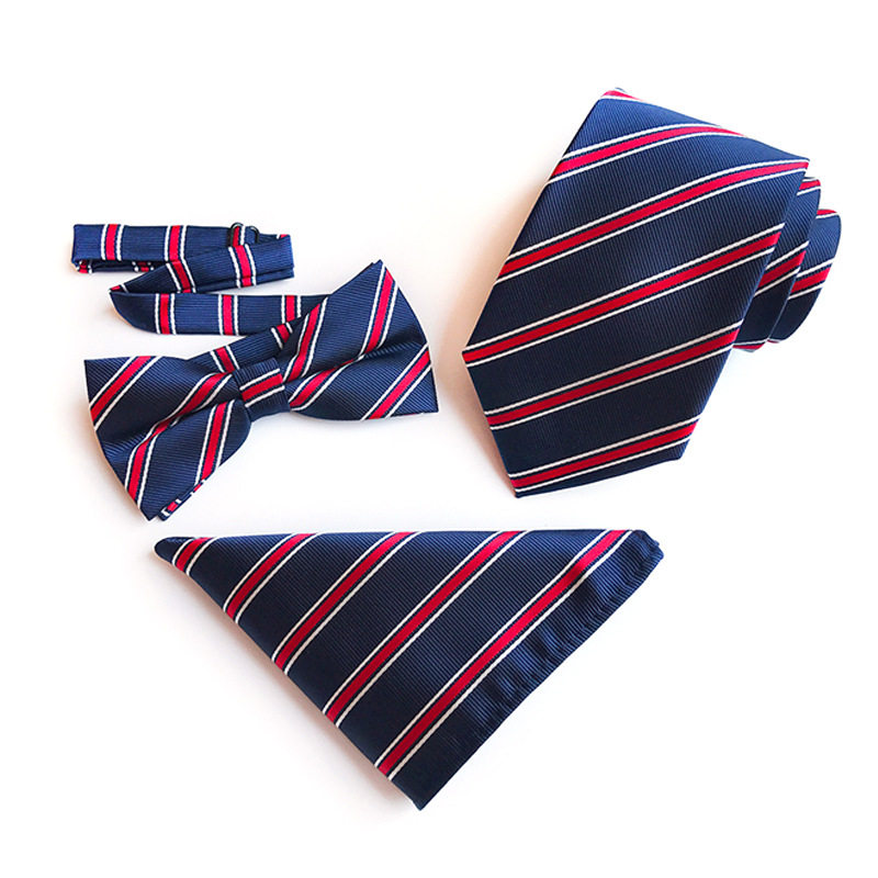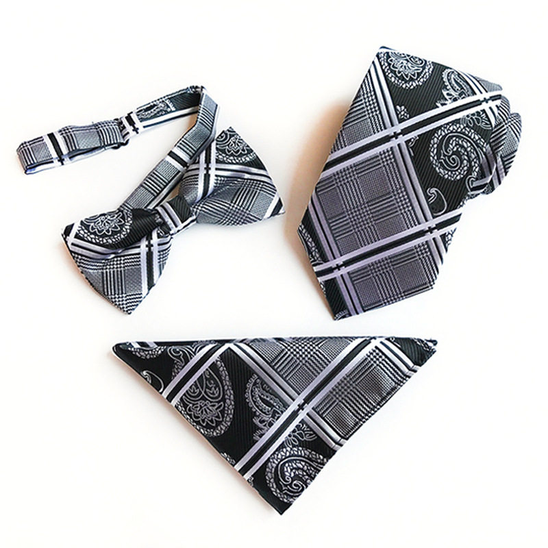 永丰现货直供2025外贸款涤纶提花8cm领带领结口袋巾三件套