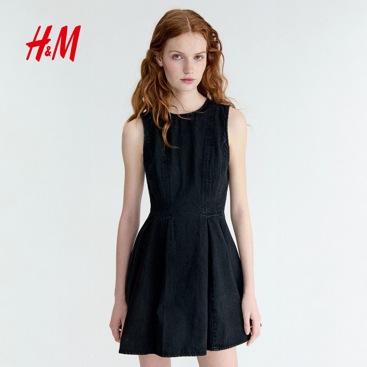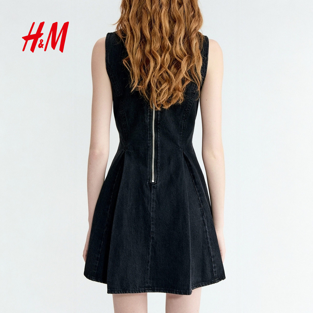 HM2026春季新款女装喇叭裙摆牛仔连衣裙1331791